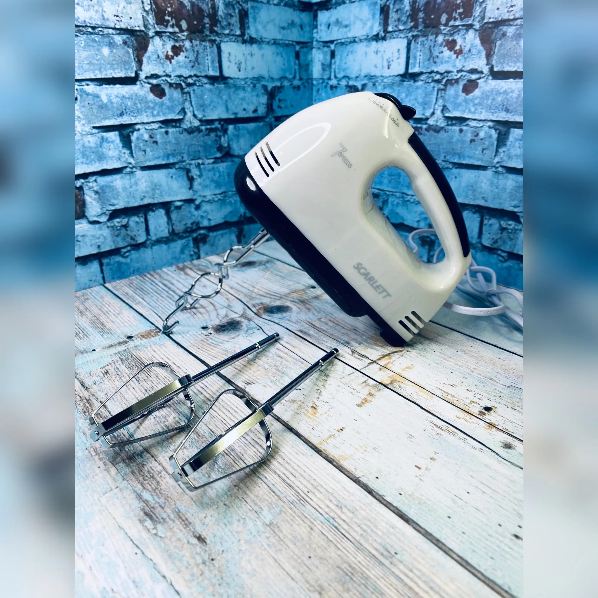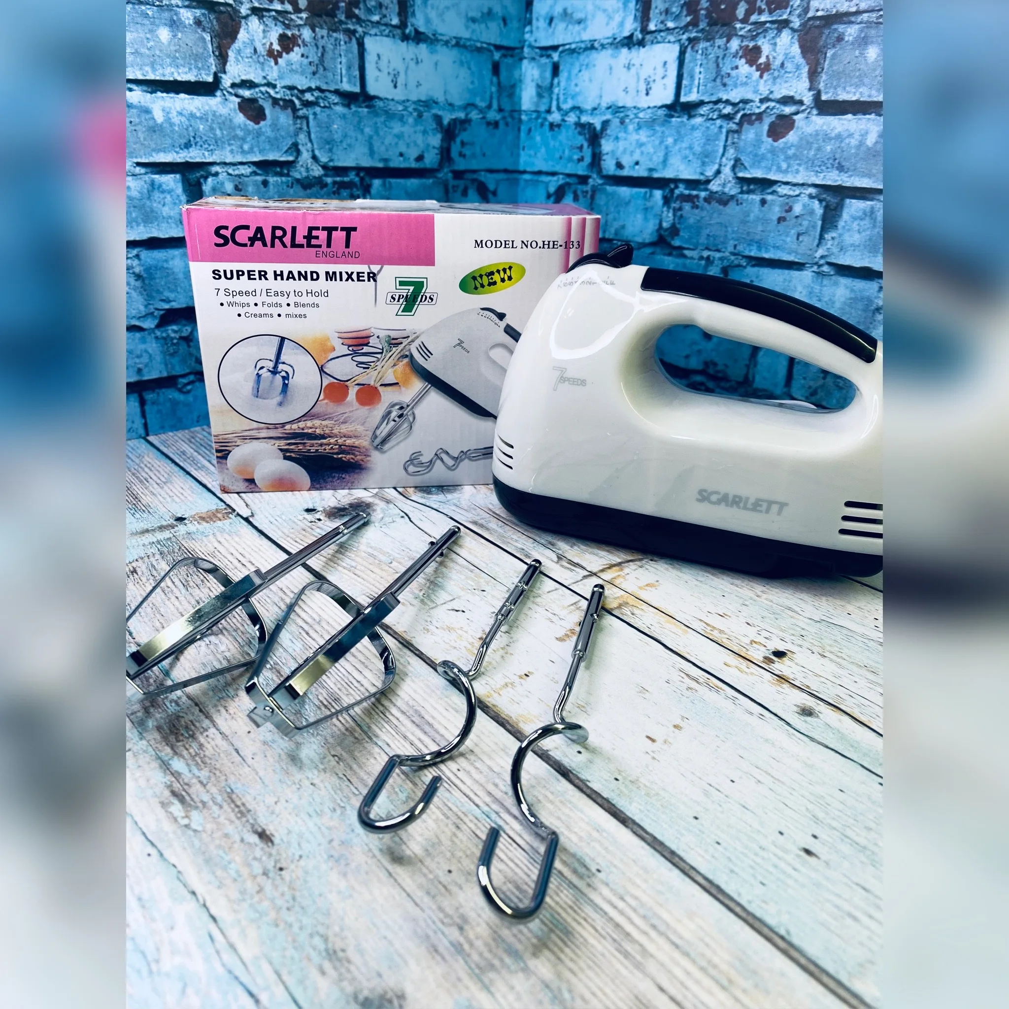 Миксер HE-133 Невозможно представить современную кухню без такого инструмента, как ручной миксер. Миксер Scarlett HE-133 - это надежное и простое в использовании устройство, которое облегчает и ускоряет процесс приготовления еды. Семь скоростей позволяют подобрать идеальный режим смешивания или взбивания. За счет насадок-венчиков Миксер Scarlett HE-133 эффективно смешивает продукты, а насадки-крюки позволяют приготовить любое тесто. С помощью миксера можно приготовить тесто, пюре, омлеты, пудинги, соусы, взбить сливки или крем для торта и многое другое. Насадки Scarlett HE-133 легко мыть вручную или в посудомоечной машине. Ручка миксера имеет удобную форму, комфортно ложится в руку. Несмотря на свою мощность, Миксер Scarlett HE-133 работает практически бесшумно, имеет небольшой размер и вес, миксер удобно хранить и он не займет много места на кухне.Характеристики: Количество скоростей: 7 Питание: Сеть 220В Тип миксера: ручной Мощность: 280 Вт. Материал: пищевой ABS + нержавеющая сталь Цвет: белый Длина кабеля 105 см. Вес 490 грамм без насадок. Комплектация: Миксер Насадки:Венчики (2 шт) Крюки для теста (2 шт) Инструкция.