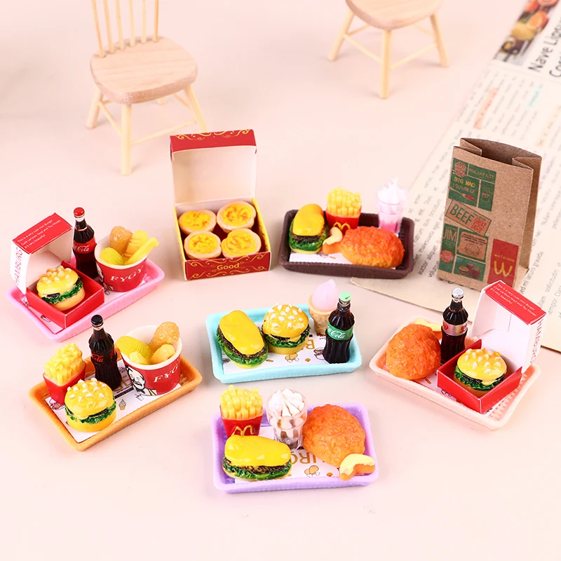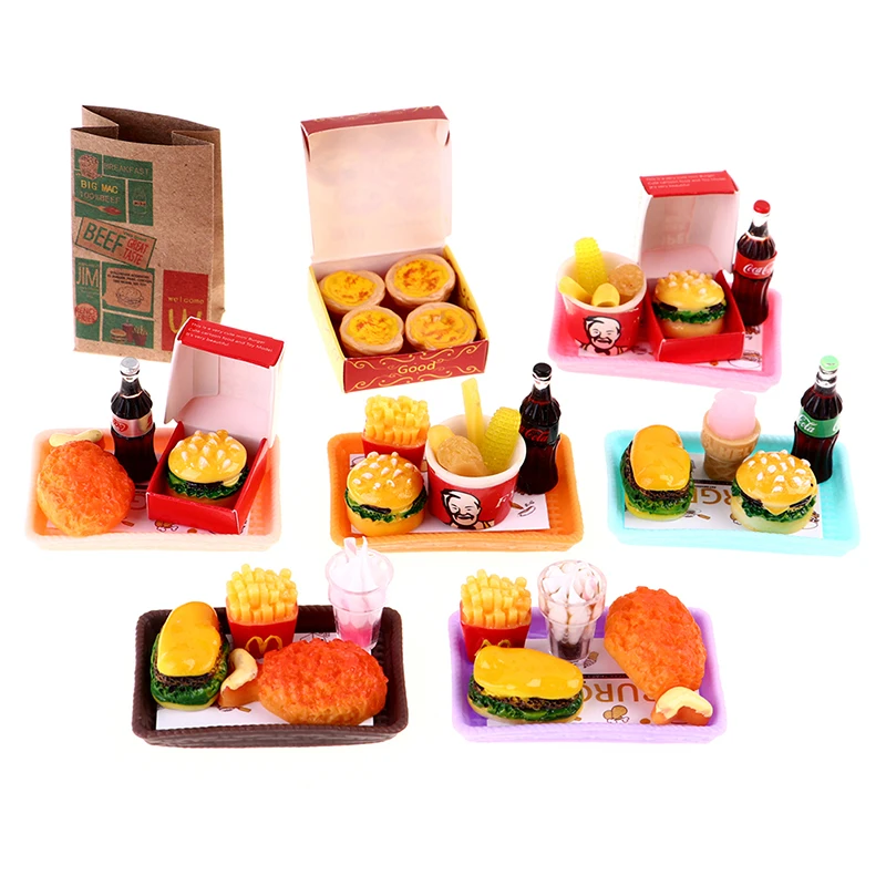 Миниатюрный гамбургер картофеля-фри кока-колы чашки бюстгальтера полная дома ведро быстро Еда для кукольного домика играть Кухня льда аксессуары для крема