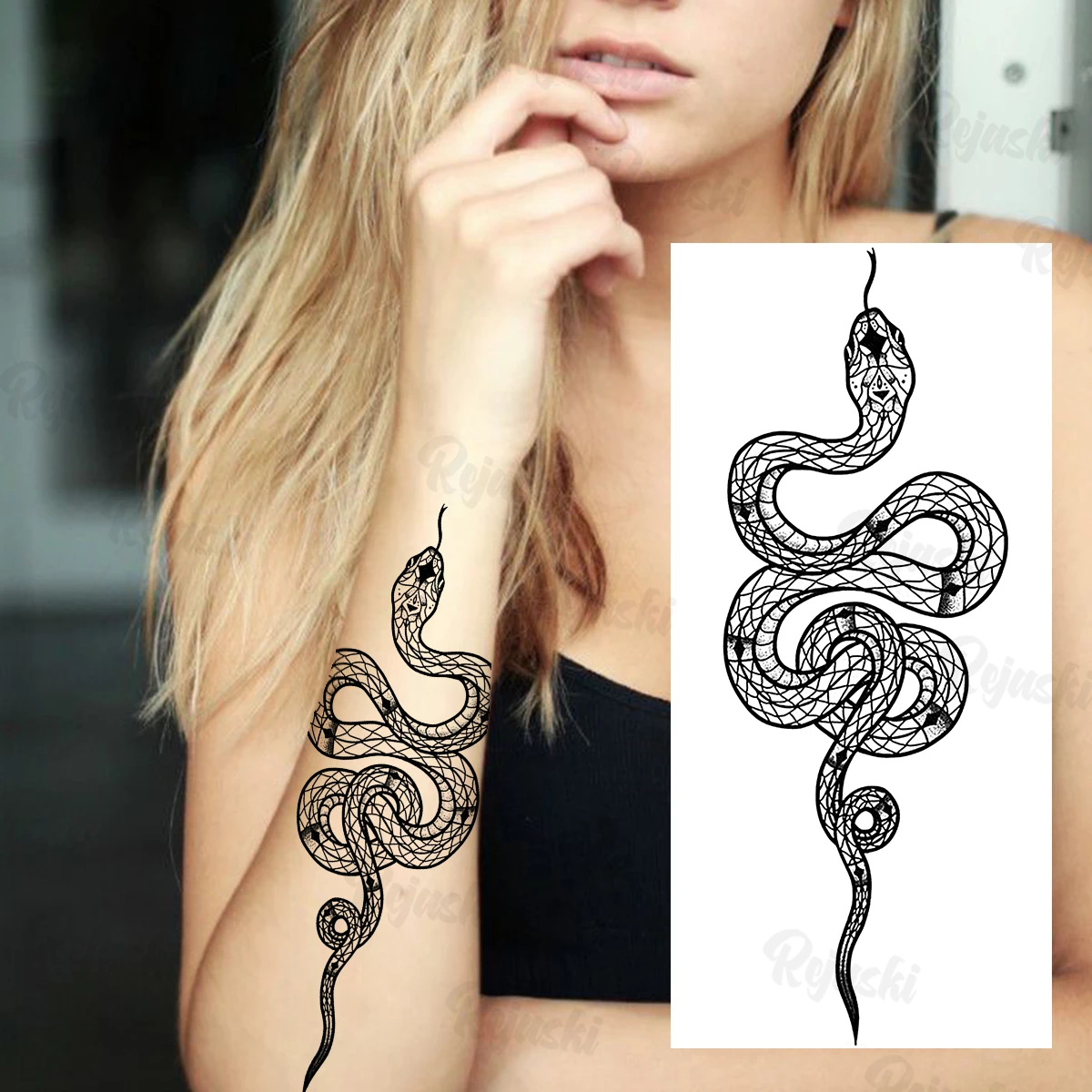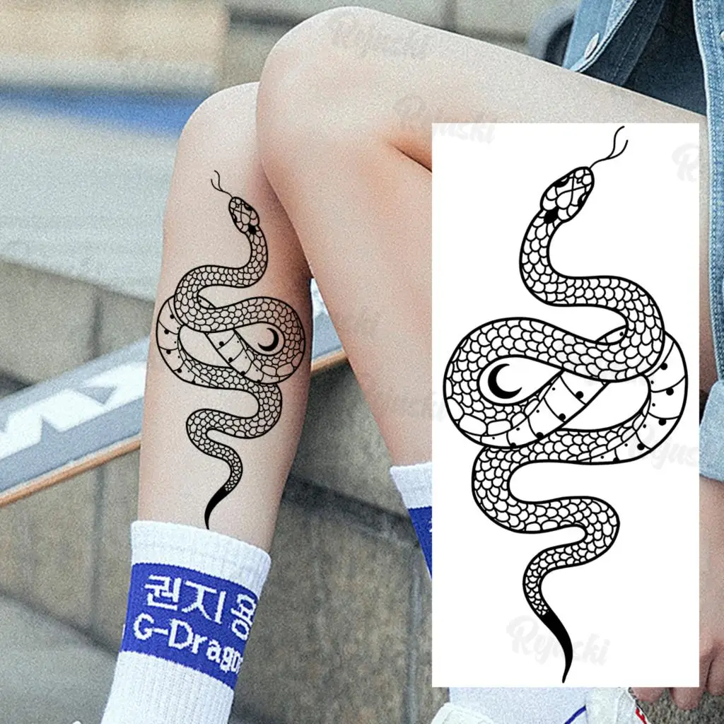Black Serpent Temporary Tattoos For Women Girls Realistic Snake Sword Rose Flower Fake Tattoo Sticker Arm Leg Tatoos Waterproof
