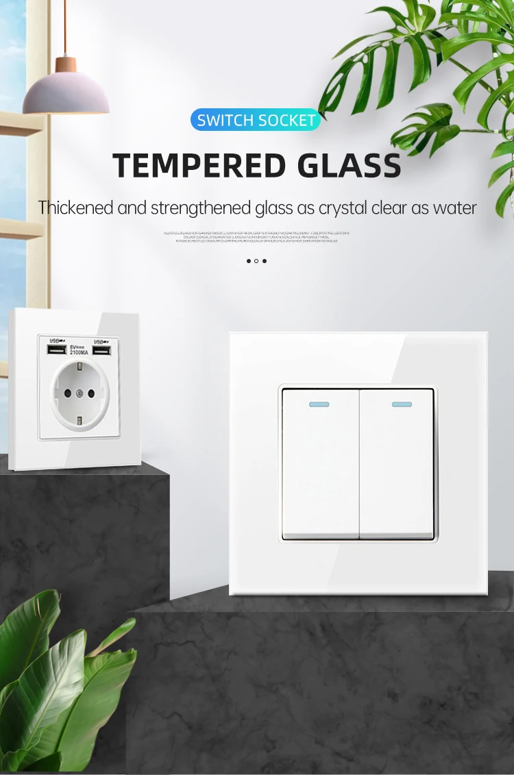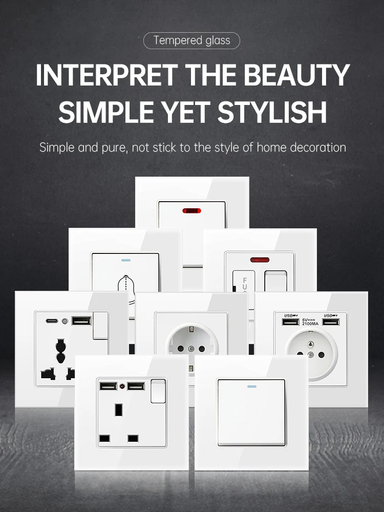 PSSRISE 86 EU UK FR Стандартный настенный выключатель розетка с 5 В 2.1A USB Type-c зарядное устройство закаленное стекло панель светильник выключатель питания розетка