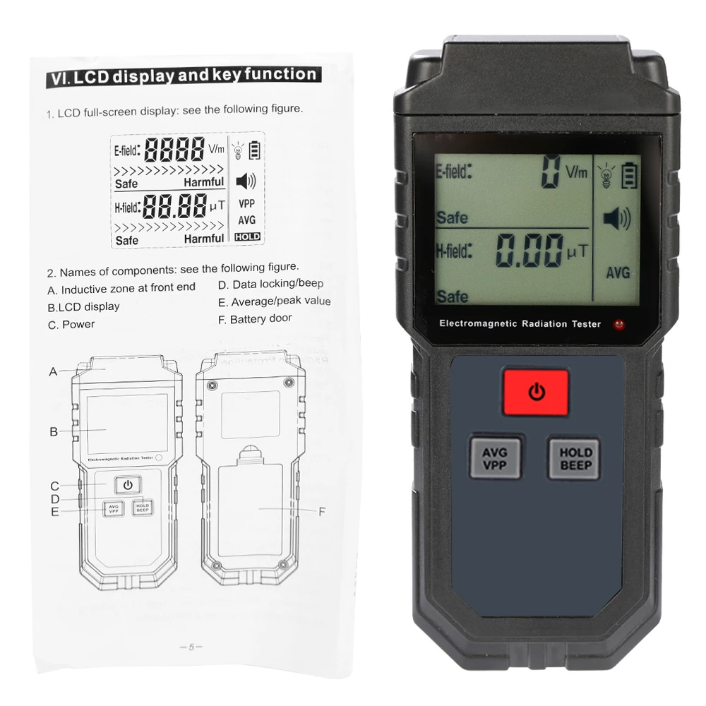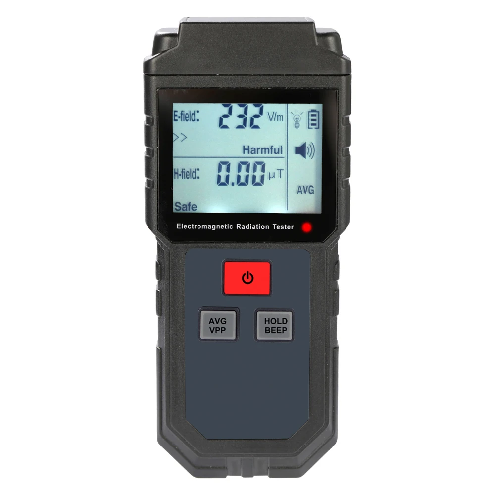 Оснащен встроенным датчиком электромагнитного излучения, который может отображать значение излучения на прозрачном цифровом ЖК-дисплее после обработки микрочипом управления.