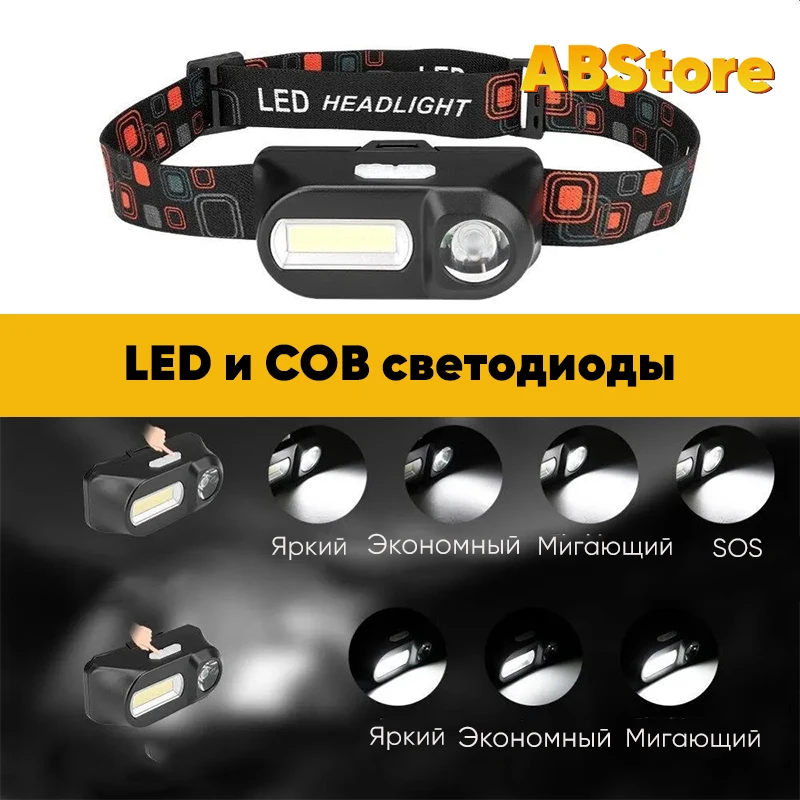 Налобный фонарь светодиодный аккумуляторный YYC-KX-1804 тип 18650 яркий мощный портативный.