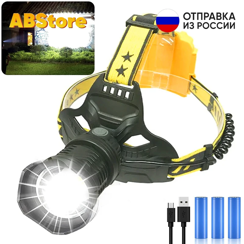 Налобный фонарь светодиодный аккумуляторный YYC-648-P90 тип 18650 яркий мощный портативный.