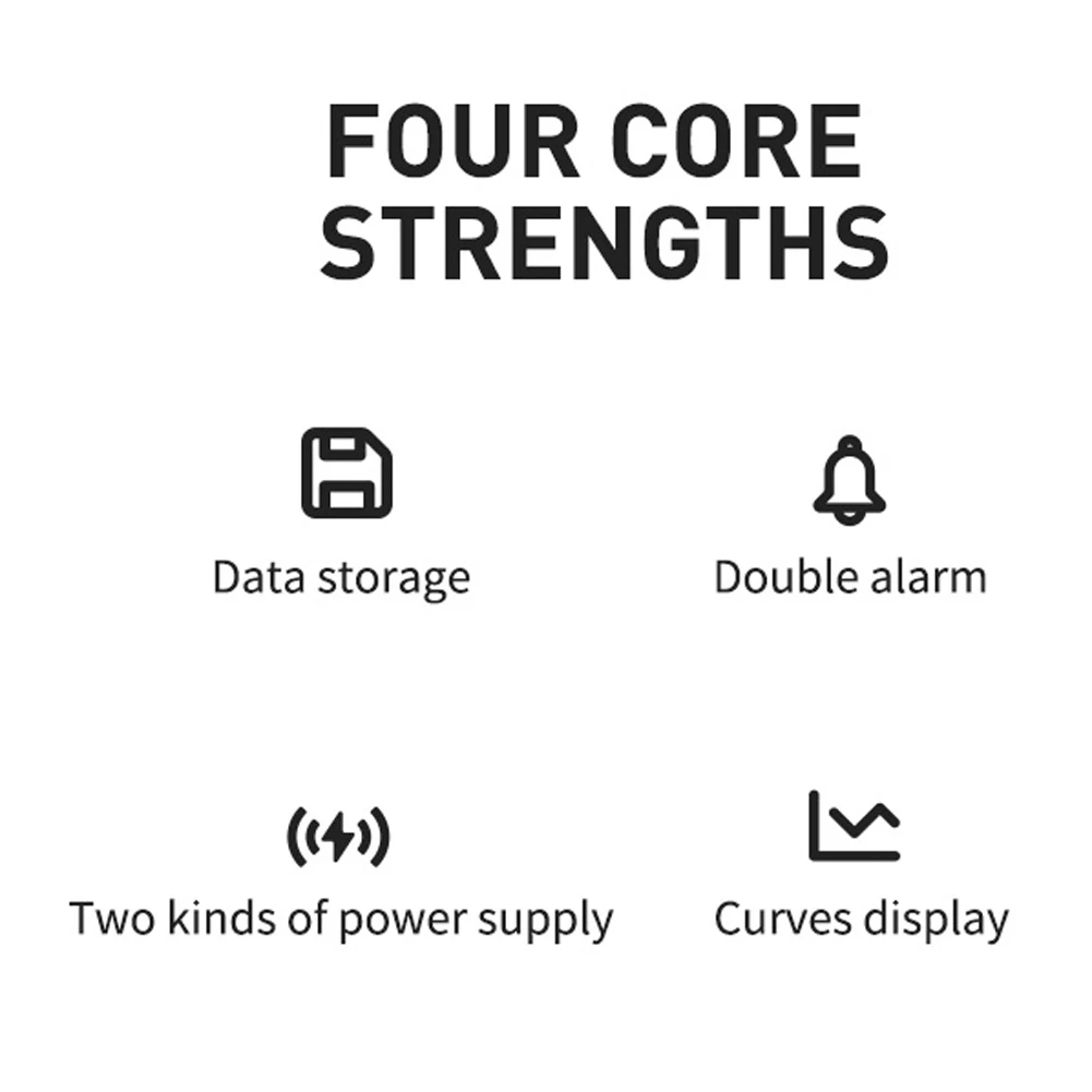Easy to Operrate: You can enter the setting interface by one button to adjust the alarm preset value, time, Chinese and English switching backlight mode, curve display, particle sound switch and other functions.