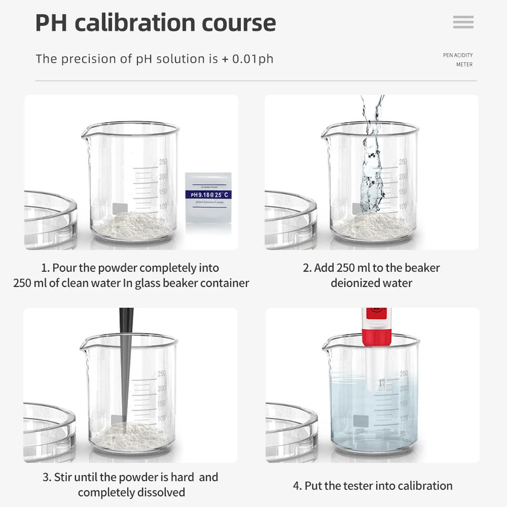 Автоматическая компенсация температуры:С функцией автоматической компенсации температуры измеритель может точно определить значение pH образца в диапазоне температур 0 °C ~ 60 °C.