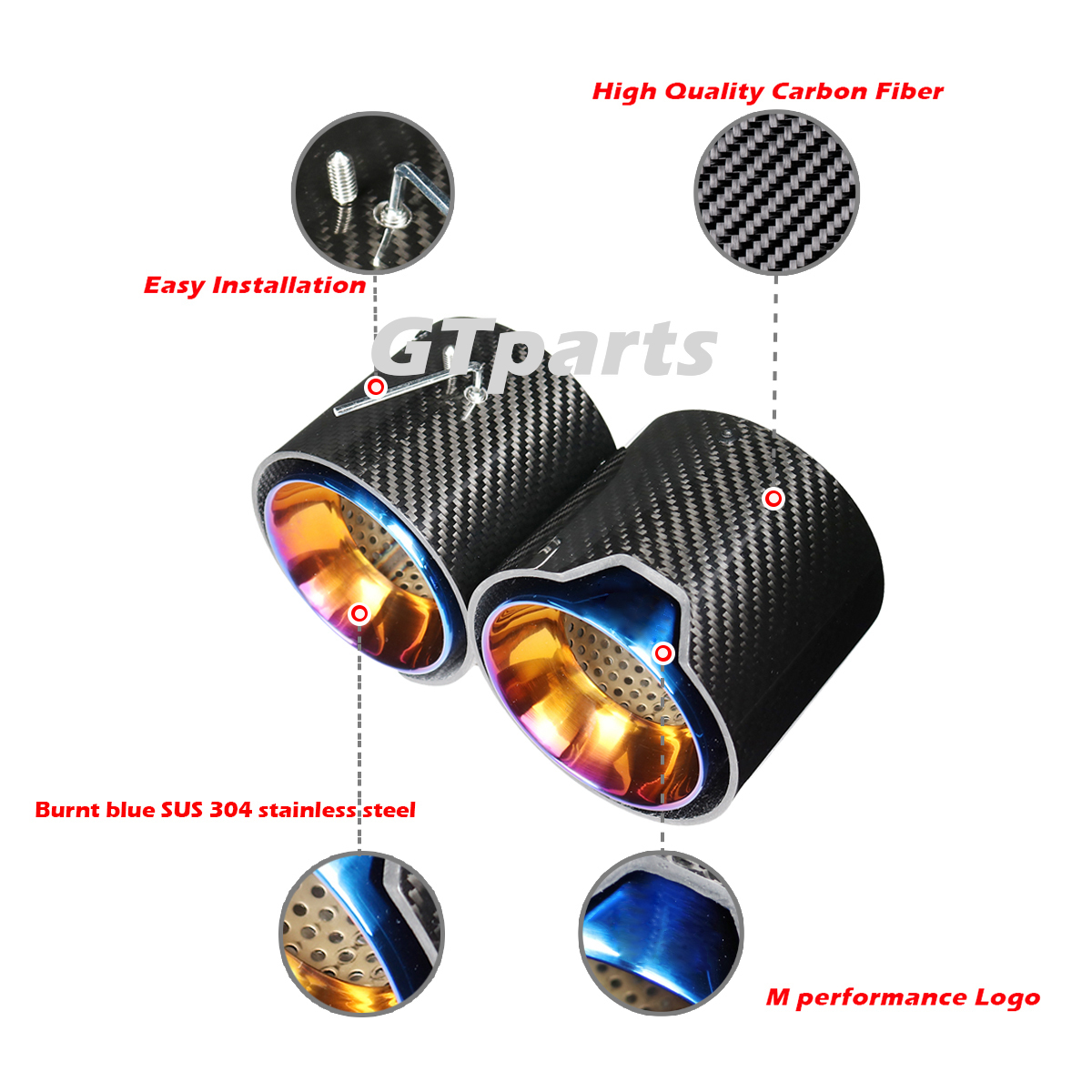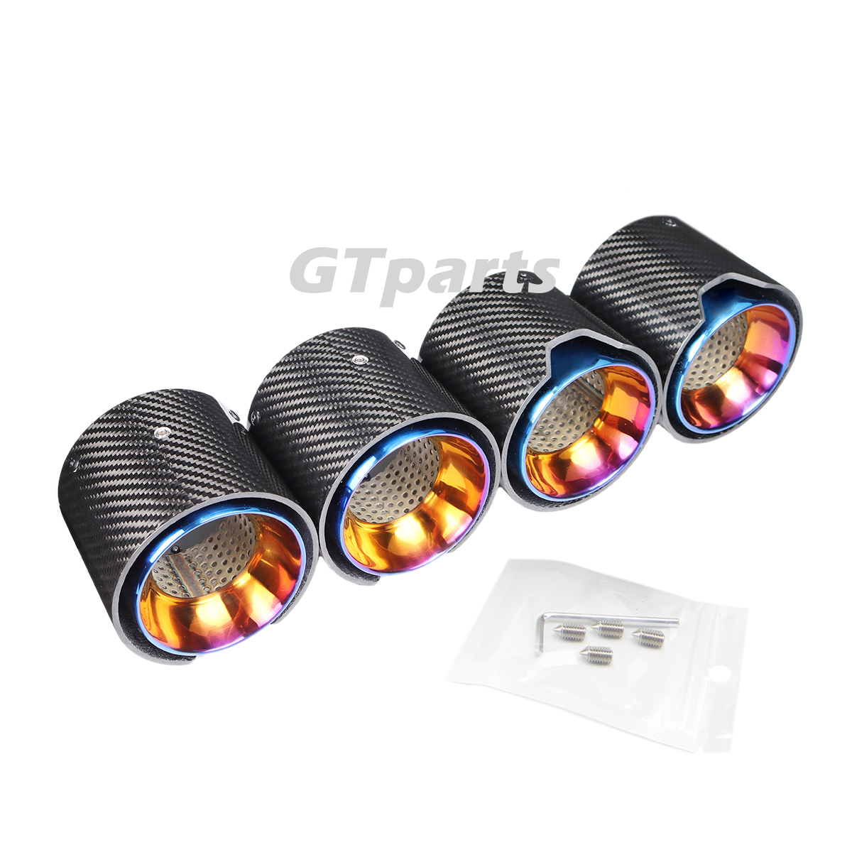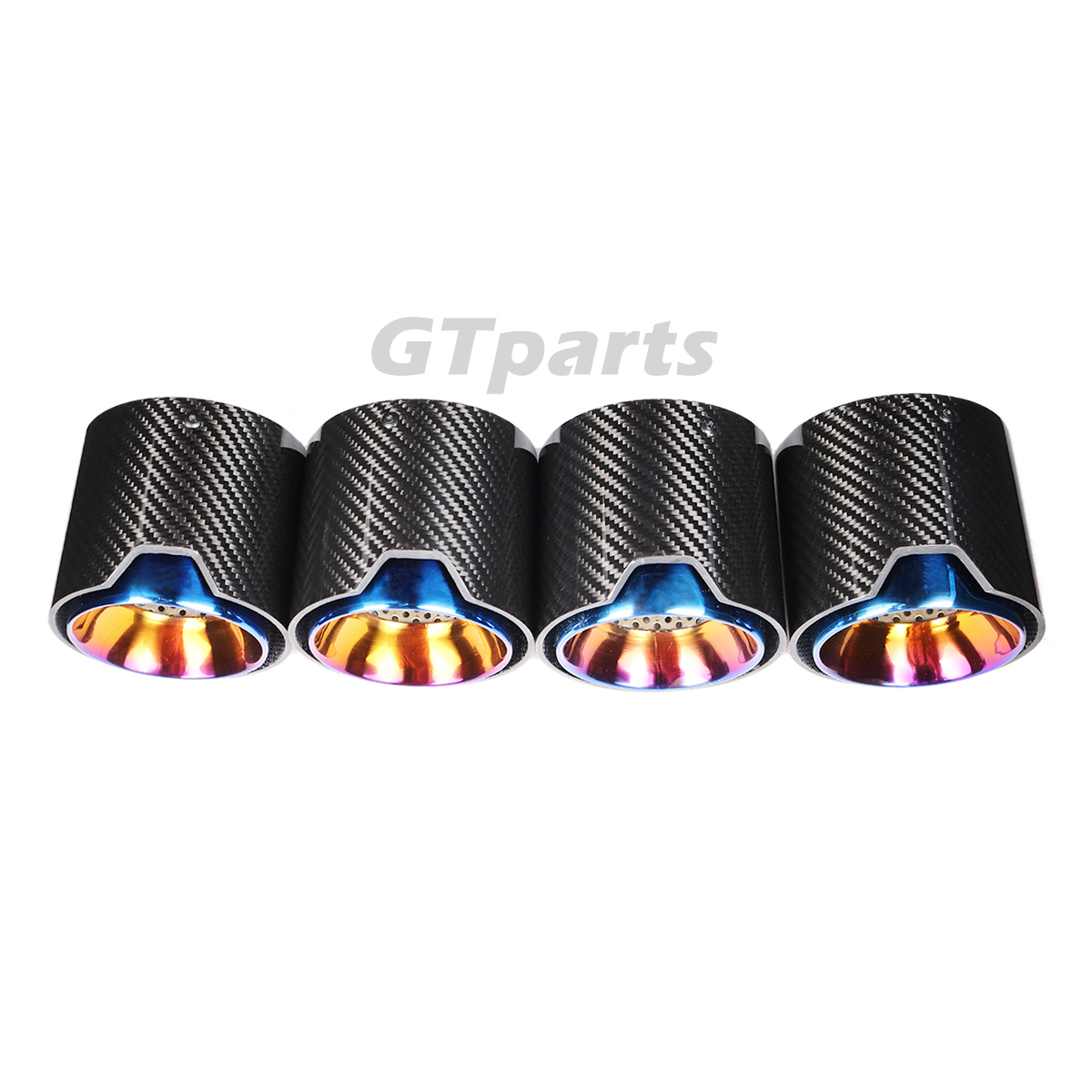 4 Pcs/Set Burnt Blue Stainless Steel Glossy Finish Carbon Fiber Exhaut Tip Muffler Pipe for BMW M3 G80 M4 G82 G83