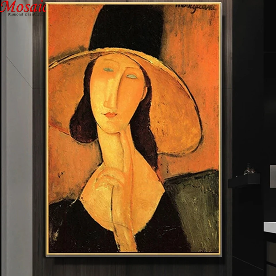 DIY Diamond Painting Famous Abstract Woman With Hat Diamond Mosaic Full Drill Cross Stitch Handmade Hobby Rhinestones Picture