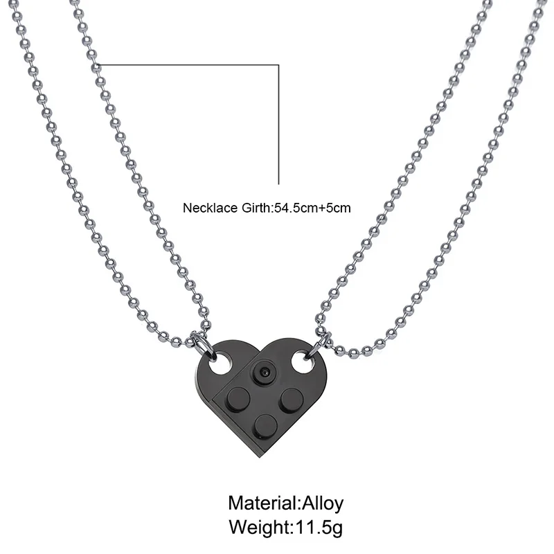 Новые Пары Ожерелье Любовь Сердце кирпич кулон цепь лего элементы для женщин мужчин дружба ожерелья подарки на день Святого Валентина ювелирные изделия 2 шт