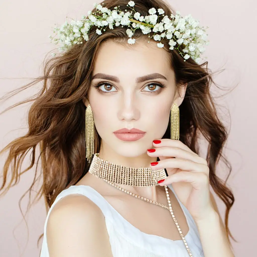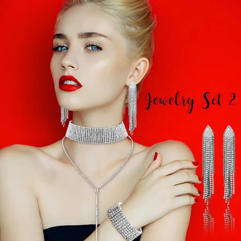 2 комплекта, стразы, ошейник с кристаллами Y, ожерелье/браслет/серьги, Женские Ювелирные аксессуары, свадебные украшения