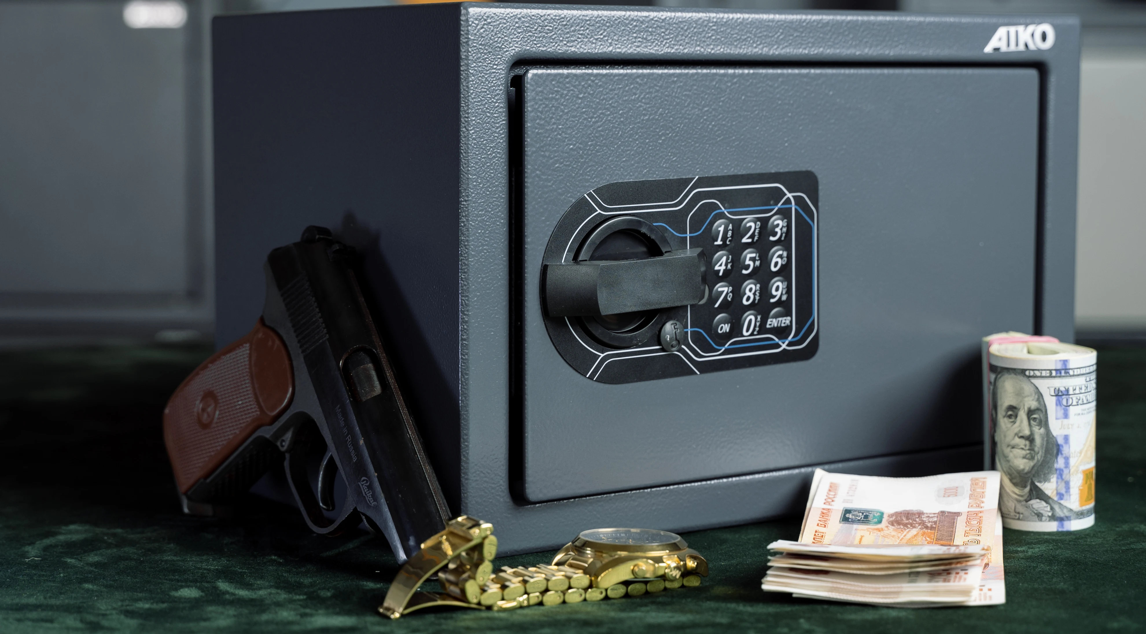 Металлический сейф AIKO T-230 EL- предназначен для хранения незначительных ценностей, документов и личного огнестрельного оружия. Отлично подойдёт как в качестве подарка, так и для личного использования. Сдержанный дизайн, прочная сталь, надежный замок - всё это сочетается в одном сейфе.