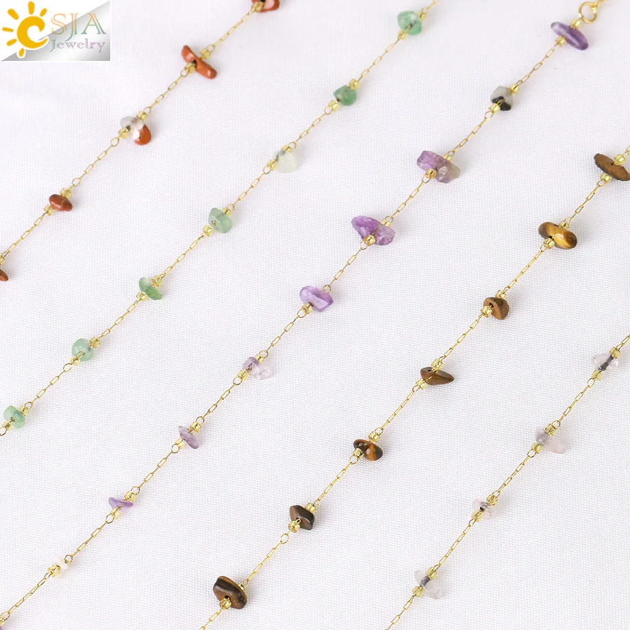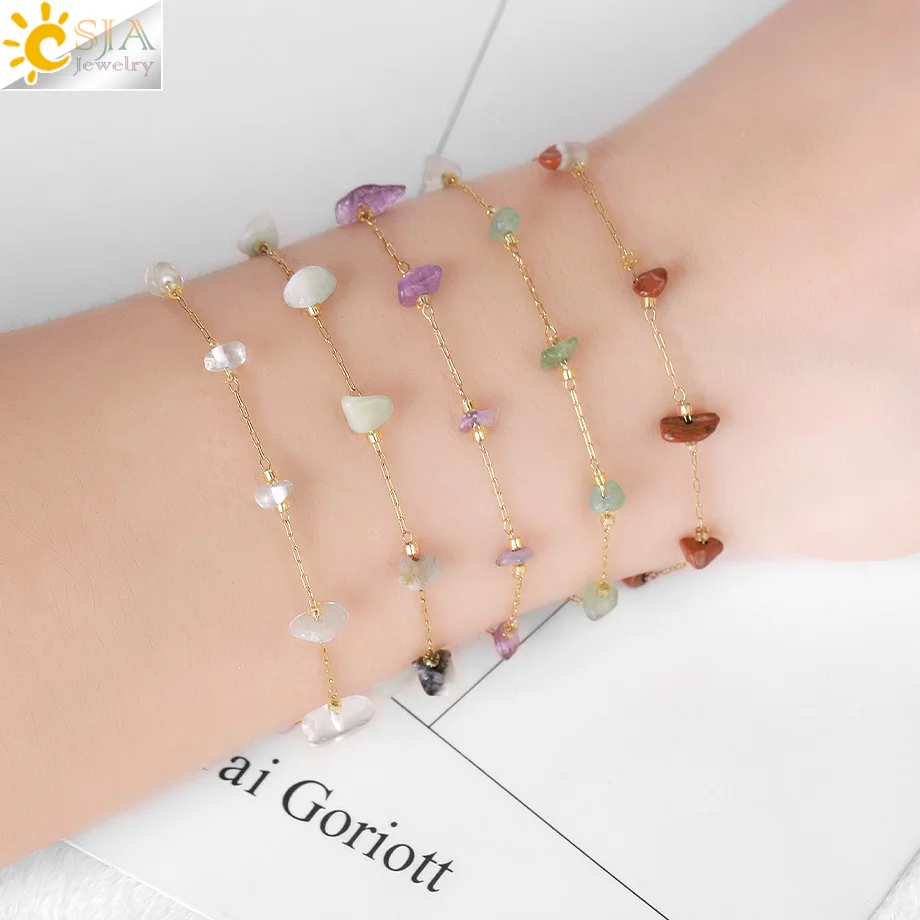 CSJA рейки чип бусины Браслеты Натуральный камень розовый кварц трендовые ювелирные изделия браслет из нержавеющей стали для женщин модные подарки G925