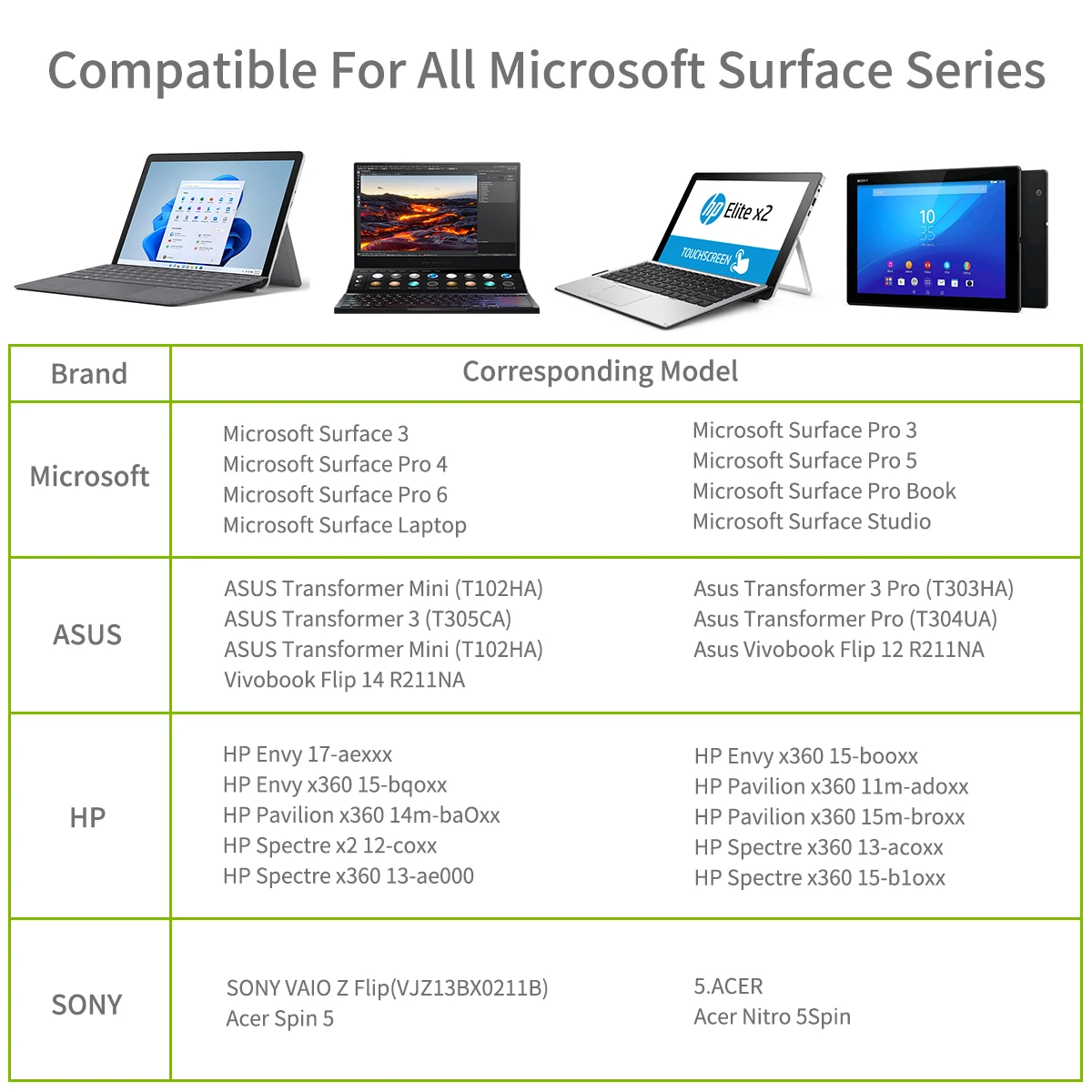 1. Безопасность и чувствительность: 100% совместимость с Surface 3, Surface Go, Surface Pro 3, Surface Pro 4, Surface Pro 5, Surface Pro (2017), Surface Pro 6, surface Laptop 1 & 2, Surface Book / Book 2, Surface Studio, с системой Windows 10, записывает без каких-либо лагов и смещений.