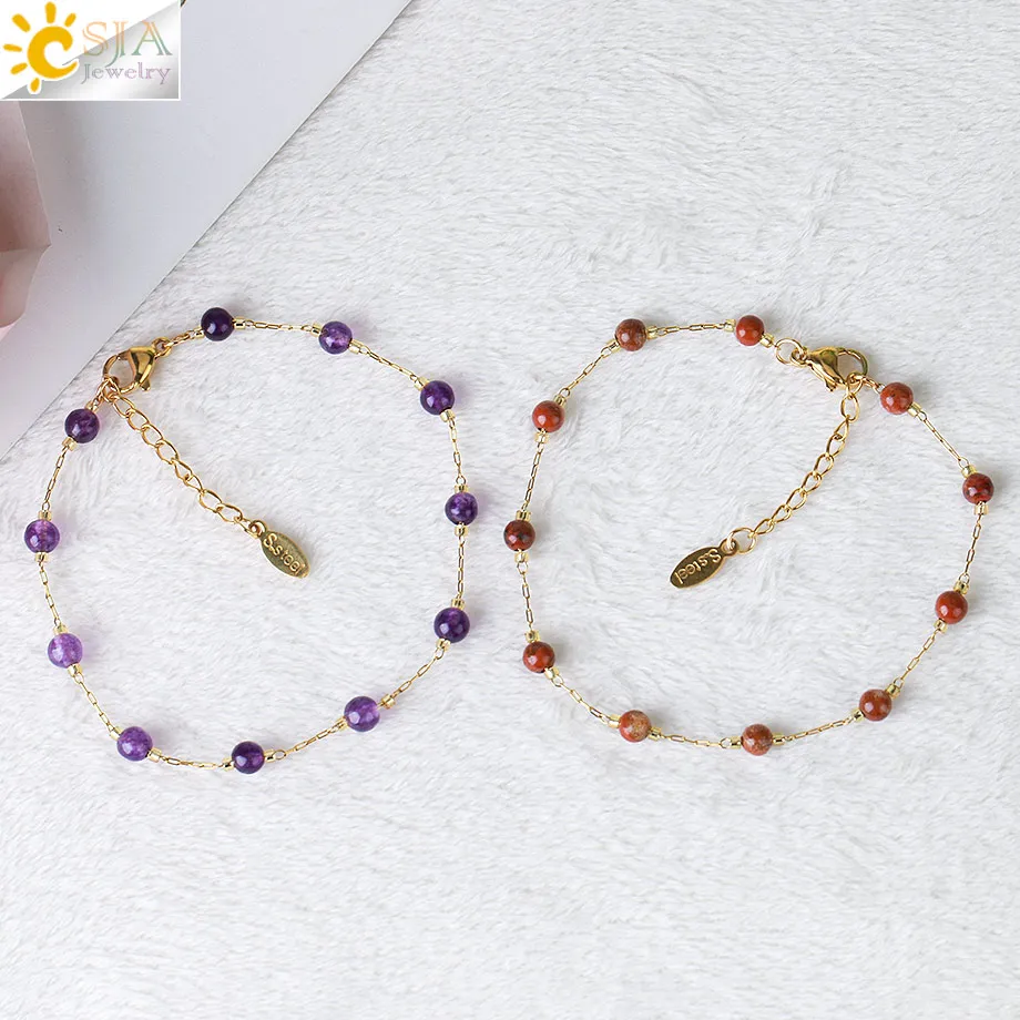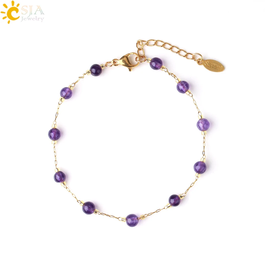 CSJA браслет из натурального камня с кристаллами и бусинами, браслет из нержавеющей стали золотого цвета для женщин, тонкое звено на цепочке, роскошное женское ювелирное изделие G908