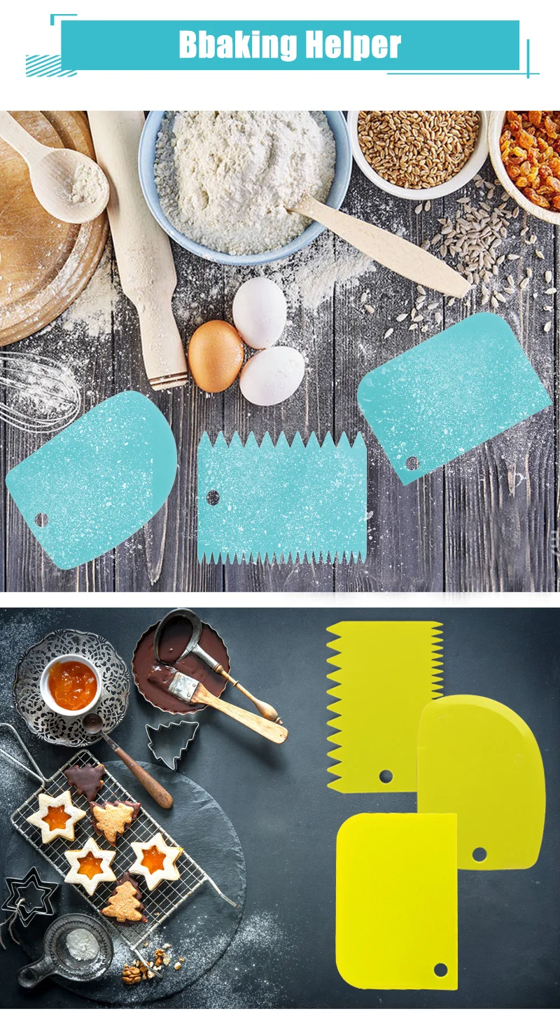 3PCS/Lot Plastic Dough Icing Fondant Scrapers