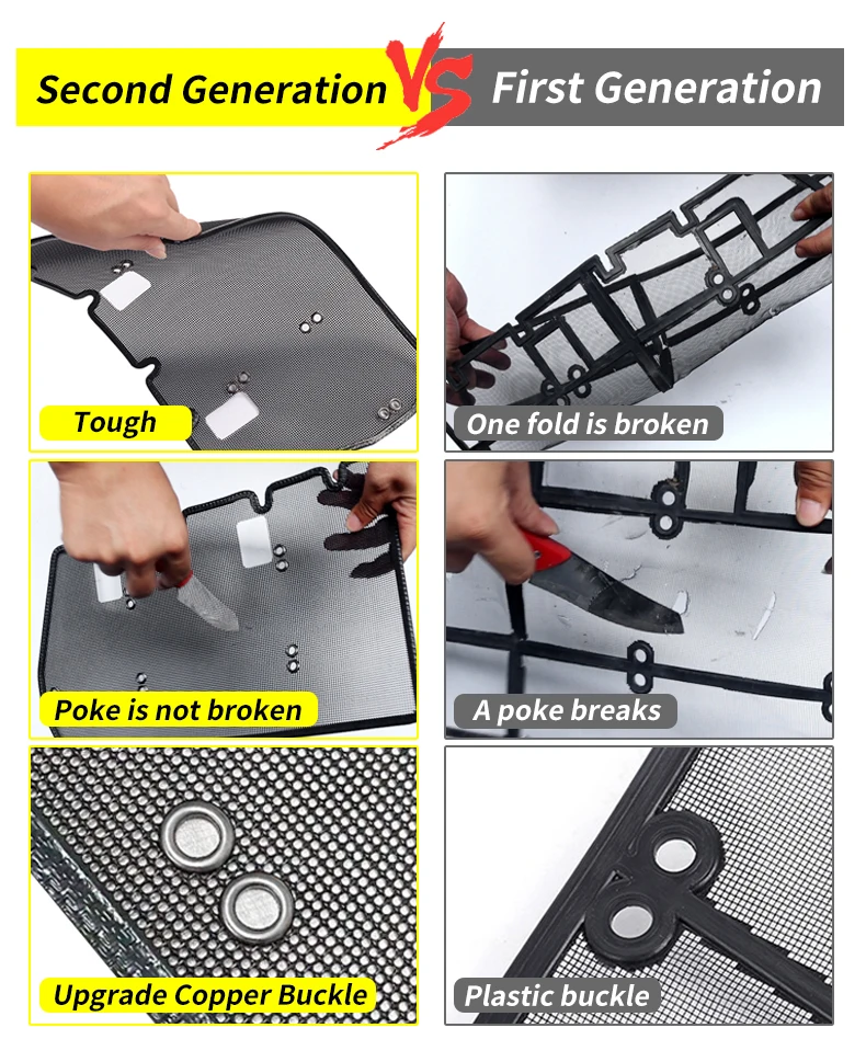 Деликатная сетка эффективно блокирует комаров и гравий и защищает отсек двигателя