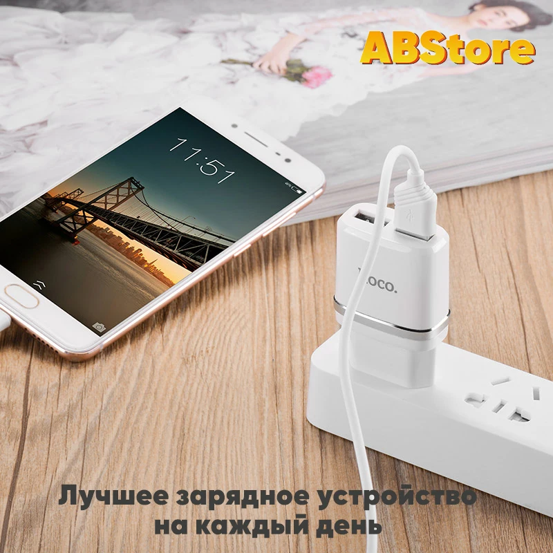 Компактное зарядное устройство для вашего смартфона двумя разъемами USB. Благодаря высокой мощности 2.4А девайс быстро зарядят ваши устройства. Лучшее зарядное устройство на каждый день.