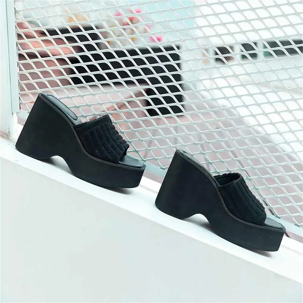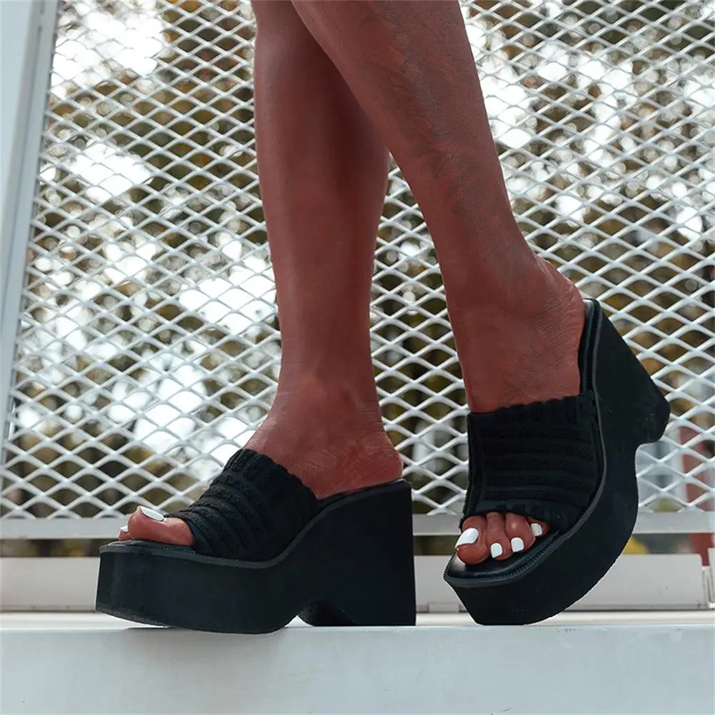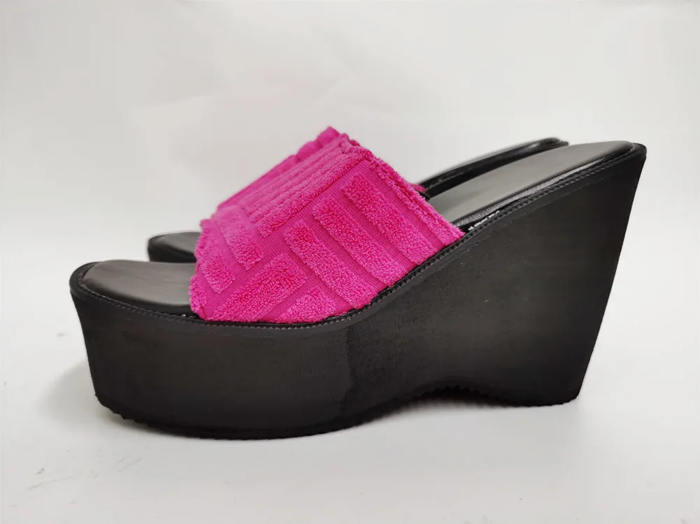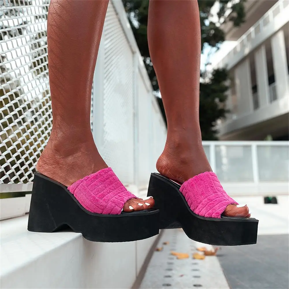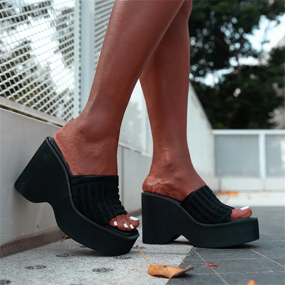 Женские тапочки на танкетке с открытым носком; Модная уличная домашняя обувь в римском стиле; Новинка 2022 года; Сезон лето; Брендовая удобная повседневная обувь