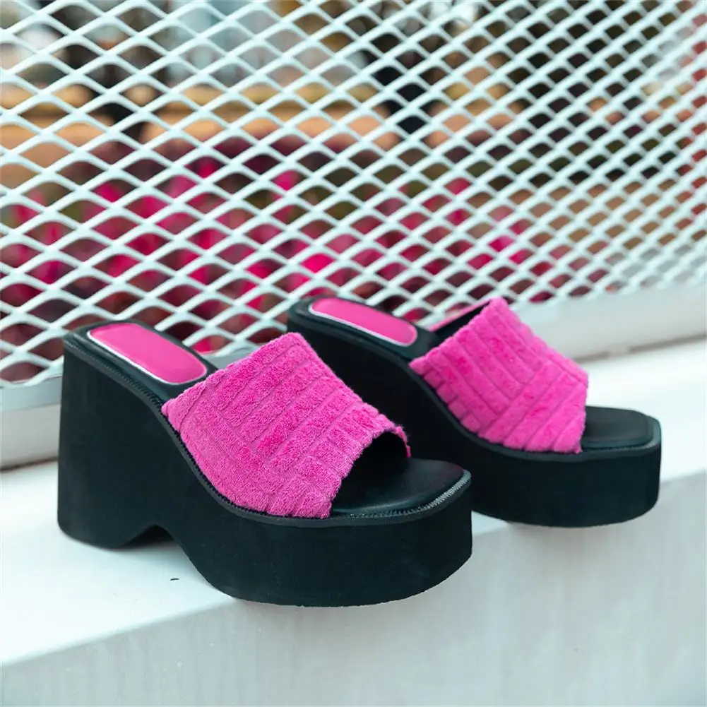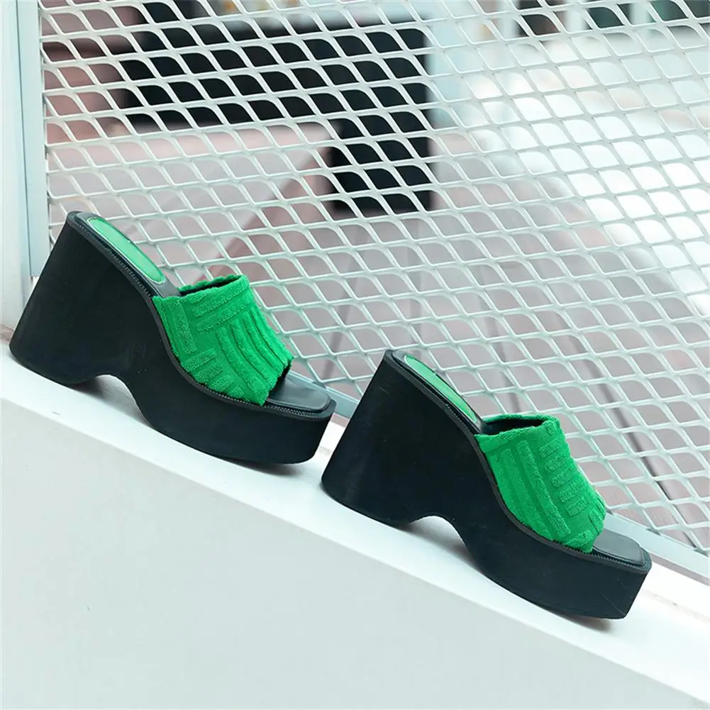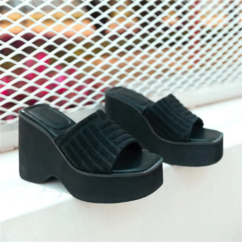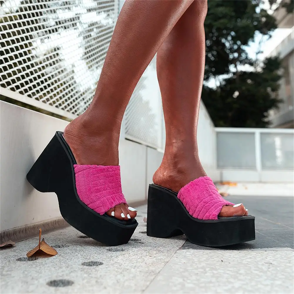 Женские тапочки на танкетке с открытым носком; Модная уличная домашняя обувь в римском стиле; Новинка 2022 года; Сезон лето; Брендовая удобная повседневная обувь