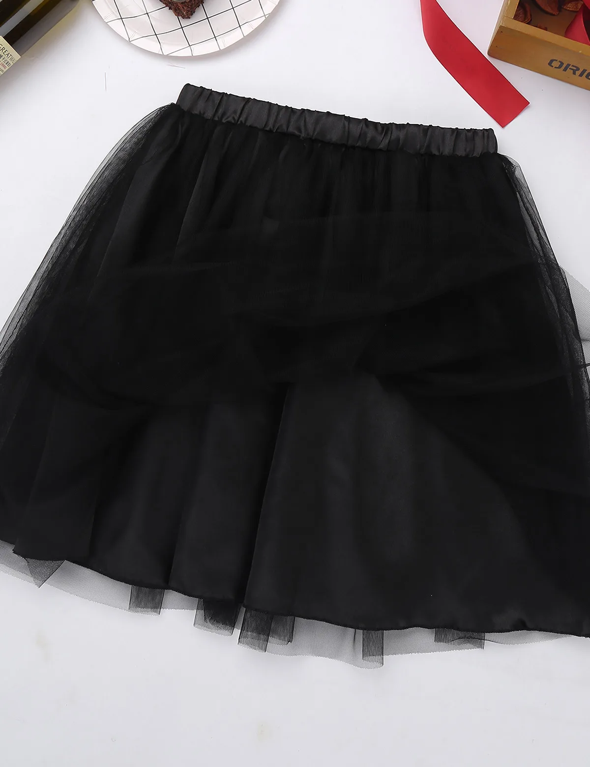 Комплект из 2 слоев юбка-пачка с удобная эластичная резинка на талии, Топ Мягкий сетчатый слой, 1 атласную подкладку.