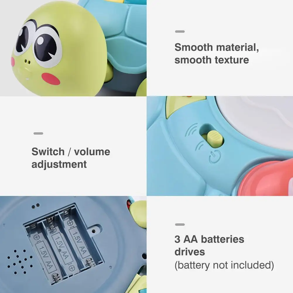 Поощряйте ребенка ползать или сидеть: нажав одну кнопку, черепаха начнет ползать счастливыми песнями, Детям нравится гоняться или ползать после него. Это также может поощрить ребенка сидеть или оставаться в сидячем положении в течение длительного времени, чтобы играть и исследовать. Отличные игрушки для ползания для детей от 6 до 36 месяцев.