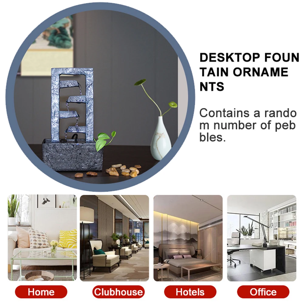 С некоторыми камнями:Положите камни на дно фонтана, чтобы вы чувствовали себя ближе к природе с настольным водным фонтаном, идеальное украшение для внутреннего стола для дома/офиса.