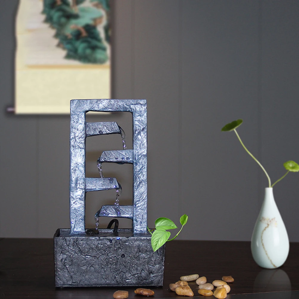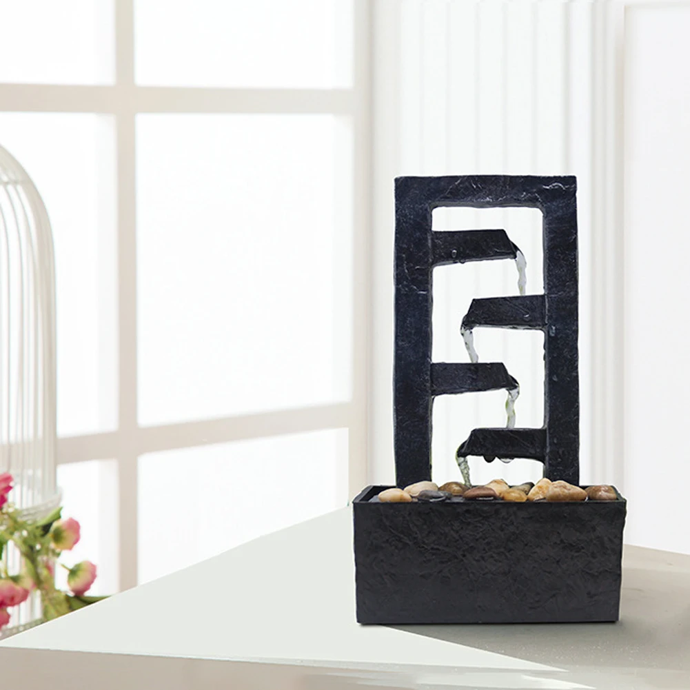 Материал:Настольный фонтан изготовлен из прочной смолы, этот декоративный настольный фонтан легкий и прочный для длительного использования.