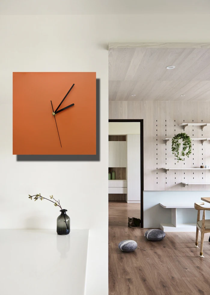 Настенные часы для гостиной, бесшумные модные оранжевые простые бытовые мягкие украшения, индивидуальные квадратные настенные украшения, часы