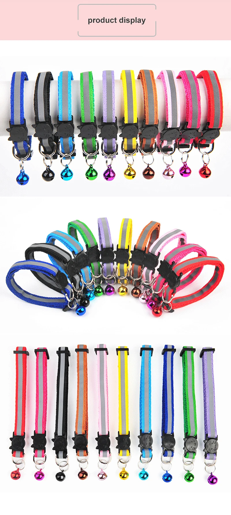 2. Прочный Нейлоновый воротник, яркий цвет, красивый и модный! И есть дизайн Ночной светоотражающей полосы, специальное отражающее покрытие позволяет домашним животным путешествовать ночью по-прежнему привлекает внимание, более безопасно!
