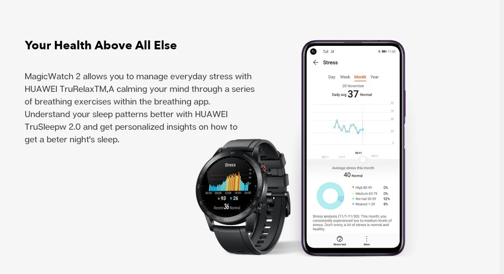 Корпус из нержавеющей стали 316L MagicWatch 2 изготовлен из рафинированной нержавеющей стали 316L-широко используемый материал в аэрокосмической промышленности.Обеспечивает высокую прочность к весу и меньшую восприимчивость к никам и ударам от повседневной деятельности.Лицо часов, которое действительно Ваше. Персонализированные лица часовКроме того, MagicWatch 2 может показать свой личный контакт с вашими фотографиями.Так как вы можете хранить в нем несколько фотографий, каждый раз, когда вы поднимаете запястье, будет отображаться другая фотография.Прорыв в производительности батареи до 14 днейПолучите больше от вашей работы 24/7. Питание от нового чипсета HUAWEI Kirin A1, MagicWatch 2 быстрее обрабатывает данные, используя меньшую мощность для тех же результатов.Тестирование кислорода в крови (SpO2) и проверка дыханияОкончательный гуру для тренировки и здоровья15 режимов фитнеса, основанных на цели, остаются мотивированными на пути к дроблению ваших целей, 2 режима фитнеса MagicWatch имеют voiceover guidance' для реальных советов.Вечером, сделайте перерыв и потратьте минуту, расслабляя свой ум через дыхательное приложение для лучшего ночного сна.Собственный Каждый циклПриложение builit-in running поставляется с 13 различными курсами бега с голосовым управлением в режиме реального времени ", если вы новичок в беге или опытный, вы нашли что-то подходящее, чтобы помочь улучшить вашу выносливость прямо сейчас.Монитор сердечного ритма для плавания 5Wiath 50m Водонепроницаемость и allnew HUAWEI TruSeenw 3,5, MagicWatch 2 помогает вам лучше понять свои показатели плавания, точно измеряя частоту сердечных сокращений, включая SWOLF, расстояние, калории и скорость.Ваше здоровье выше всегоMagicWatch 2 позволяет управлять повседневным стрессом с помощью Huawei TruRelaxTM, успокаивая ваш ум с помощью серии дыхательных упражнений в приложении для дыхания. Лучше поймите свои узоры сна с HUAWEI tresleepw 2,0 и получите персонализированные идеи о том, как получить ночной сон beter.Обрежьте шнур беспроводным звуком, беспроводным воспроизведением музыкиУправляйте воспроизведением музыки ваших любимых мелодий прямо с запястья. Благодаря встроенной памяти MagicWatch 2 4 ГБ вы можете мгновенно подключиться к вашим HONOR Sport профессиональные наушники в беге без необходимости использования вашего смартфона HONOR.