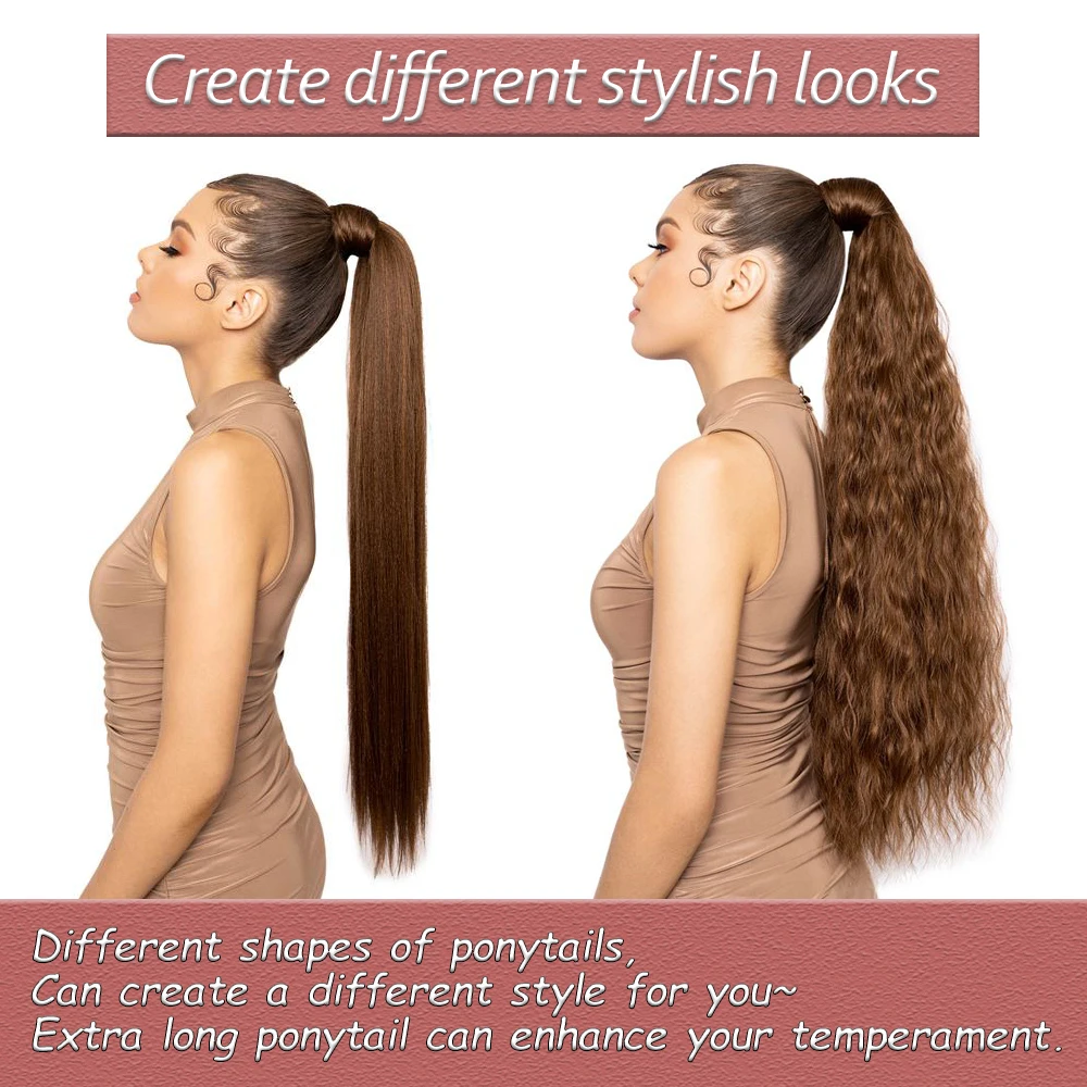 Easy to use: You only need to trim the extensions above the headband to add the ponytail to your real hair. Simply insert the hair clip above the hair clip, wrap the hair with a wide soft weft, and then use the hair clip to fix it when needed.