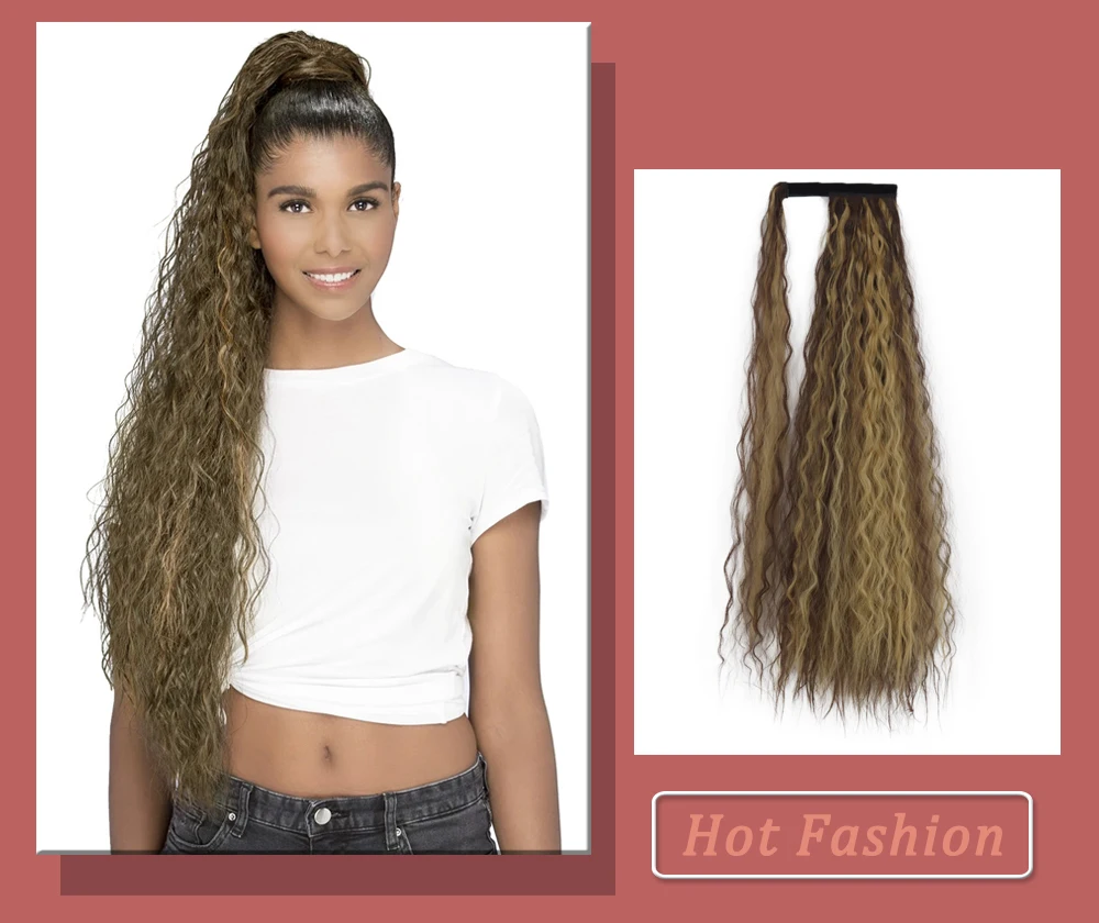NICESY 34 Inch Long Wavy Corn Whisker Curly Hair Ponytail Synthetic Hair Fiber Heat-Resistant Wig Clip Style Hair Extension