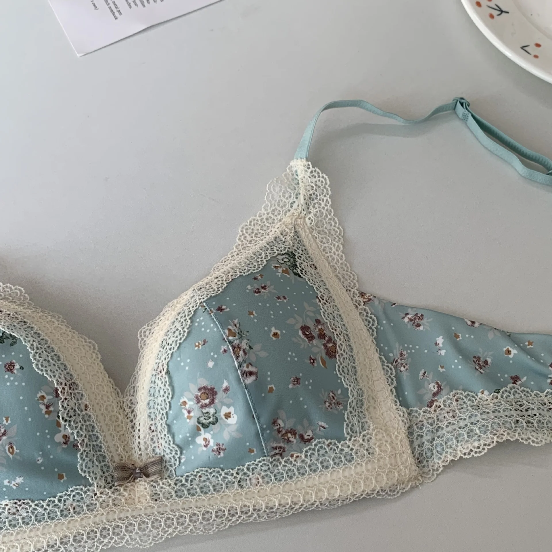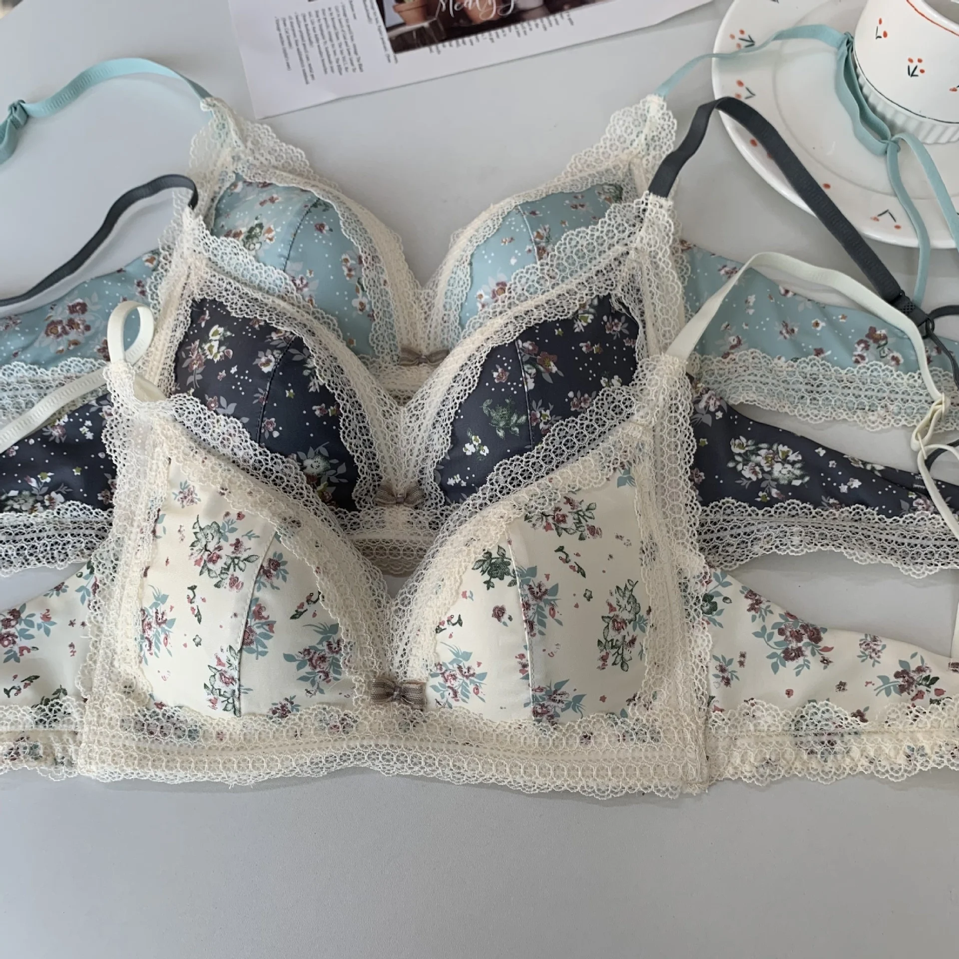 Женский кружевной бюстгальтер с цветочным принтом, бюстгальтер с эффектом пуш-ап, тонкие бюстгальтеры с треугольными чашечками, бесшовное женское нижнее белье