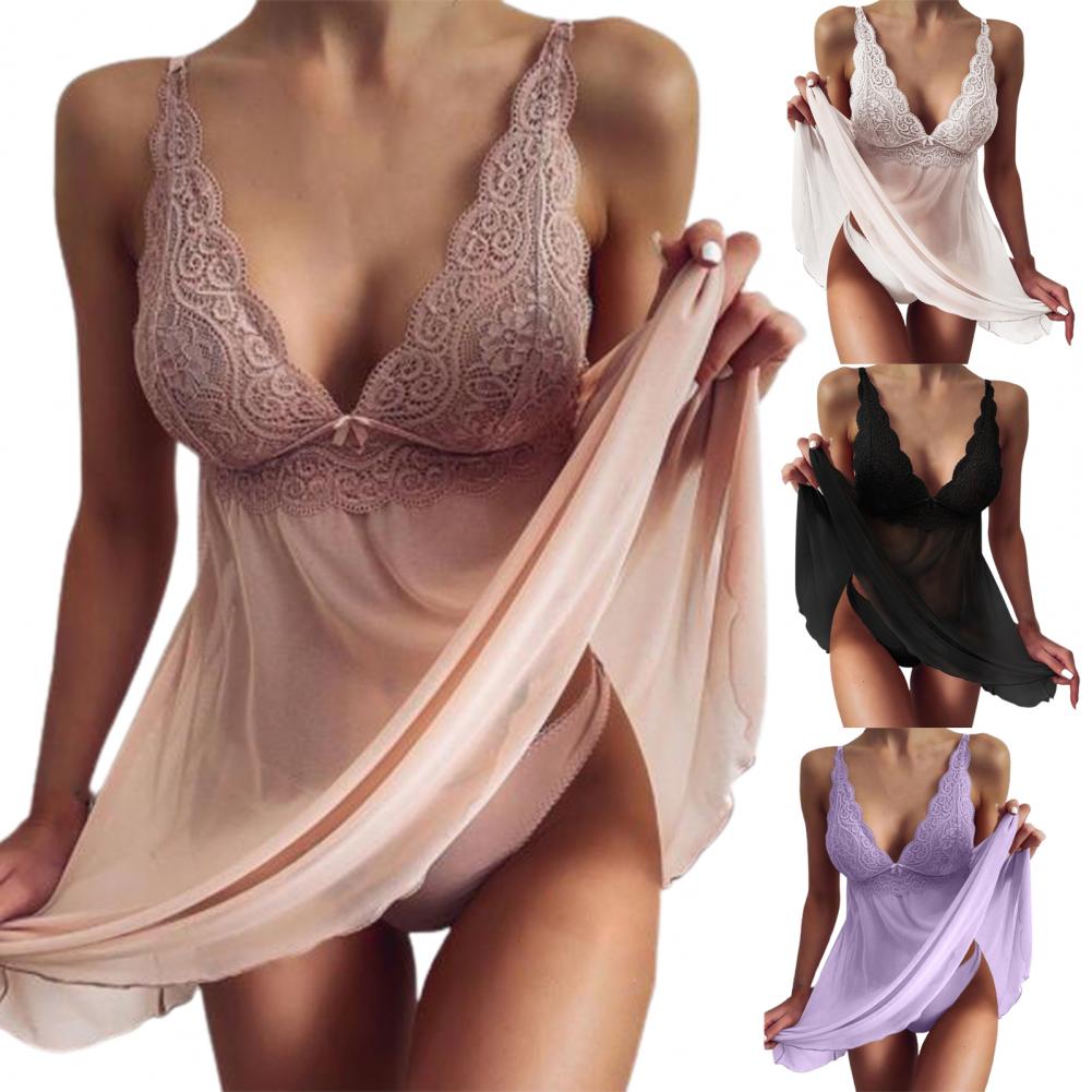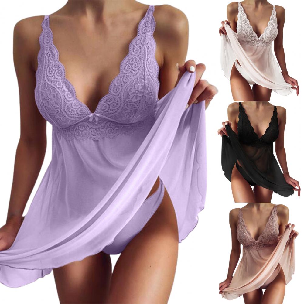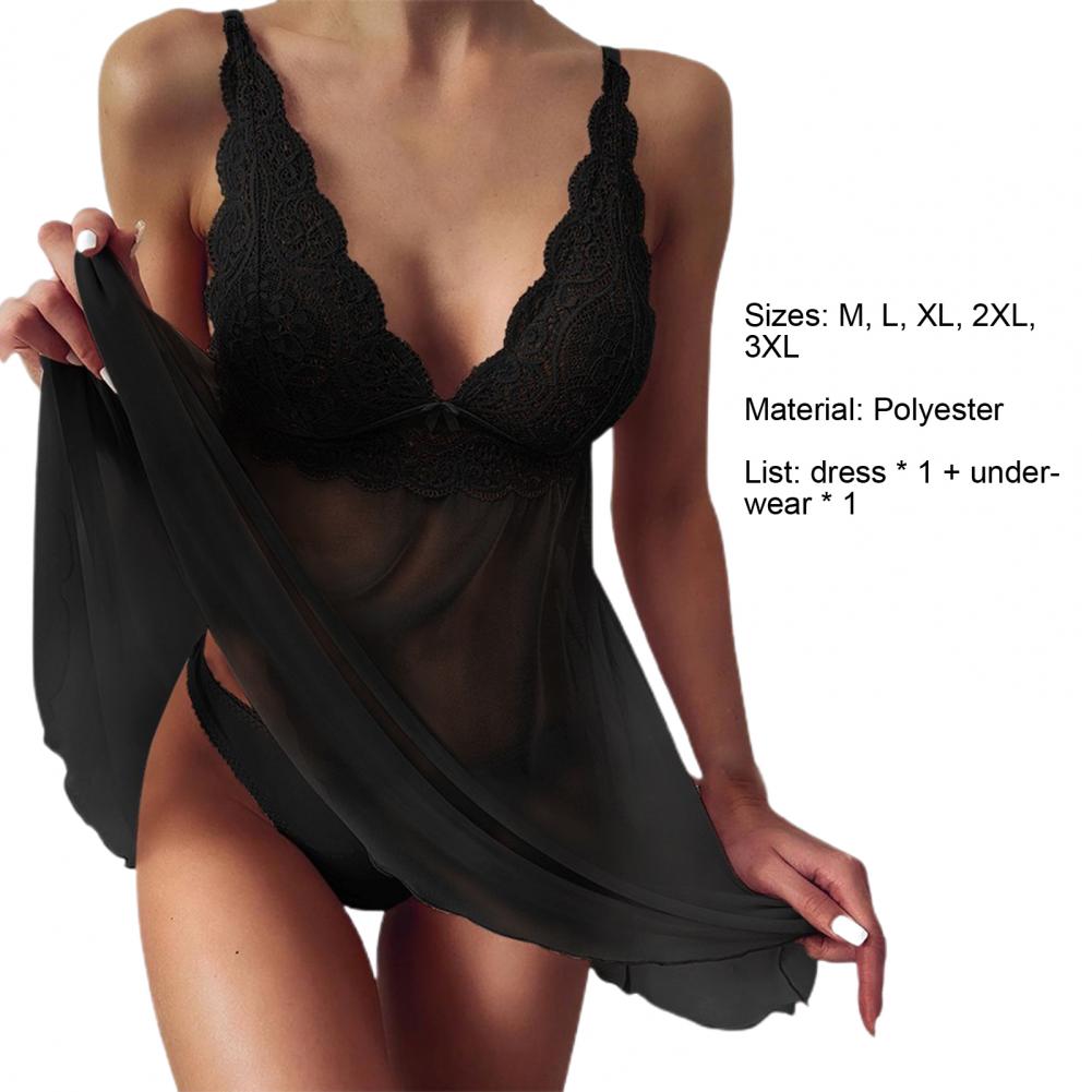Женские сексуальные пижамы из 2 предметов, Очаровательные трусики с сеткой, пижамный комплект с платьем для дома
