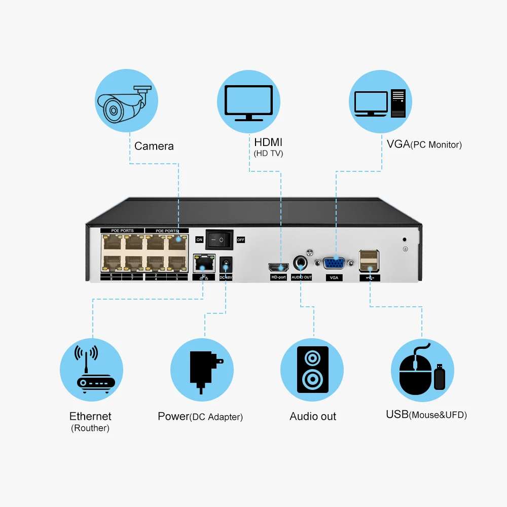 Если у вас есть несколько ip-камер или вы хотите 24/7 запись, POE NVR-ваш лучший выбор. NVR прекрасно и эффективно работает с камерами для круглосуточного мониторинга и записи для безопасности вашего дома и бизнеса и наблюдения. Поддержка мобильных телефонов, планшетных компьютеров и многоплатформенного просмотра. Когда вы выходите на улицу, вам не нужно беспокоиться о безопасности вашей собственности. Используя эту систему видеонаблюдения, вы можете одновременно просматривать видео в реальном времени в любое время и в любом месте с Wi-Fi/4G на смартфоне/iPad/ПК. При обнаружении опасности эта камера наблюдения запускает оповещения, незамедлительно отправляя оповещения по электронной почте и нажимая уведомления на ваше устройство. Вы можете создать определенные зоны для обнаружения движения, чтобы отслеживать определенные области по вашему желанию. Вы можете настроить чувствительность обнаружения движения, чтобы уменьшить Ложные оповещения.