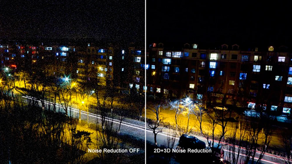 Ваша камера использует технологию DNR (цифровое шумоподавление) для фильтрации шума от настроек низкий светильник, а также любого шума, вызванного движением. Устраняя зернистость, ваша камера обеспечивает более чистое, более точное изображение с лучшей четкостью, резкостью и улучшенным обнаружением движения, улучшая ваш HD опыт даже в темноте! DNR не только снижает уровень шума, но и уменьшает размеры видеофайлов, что обеспечивает больший объем дискового пространства для хранения.