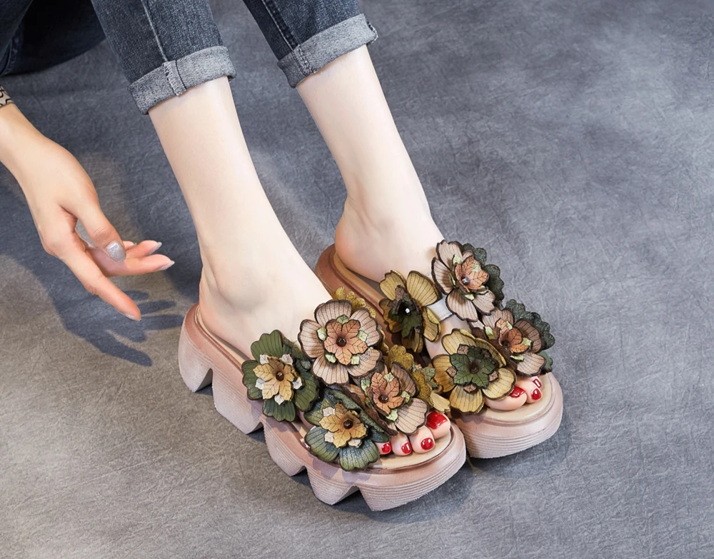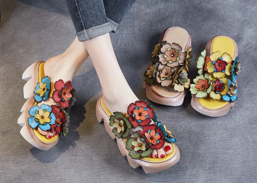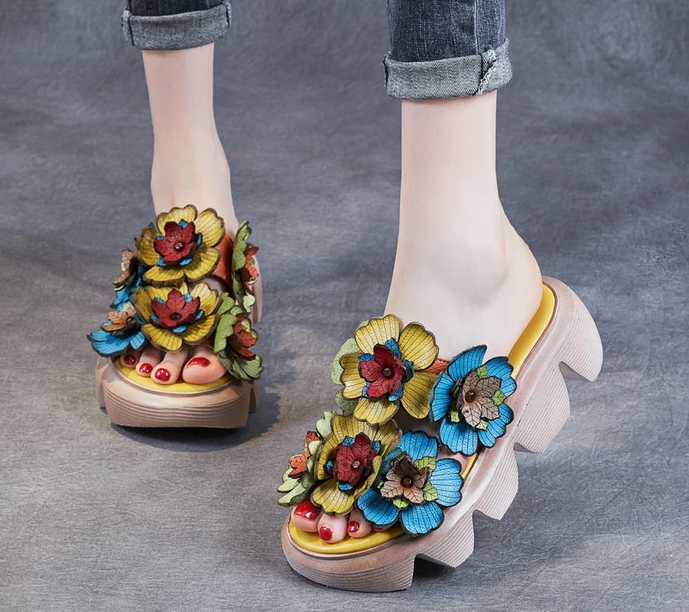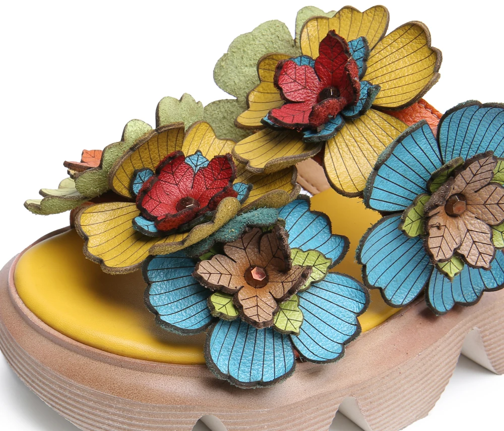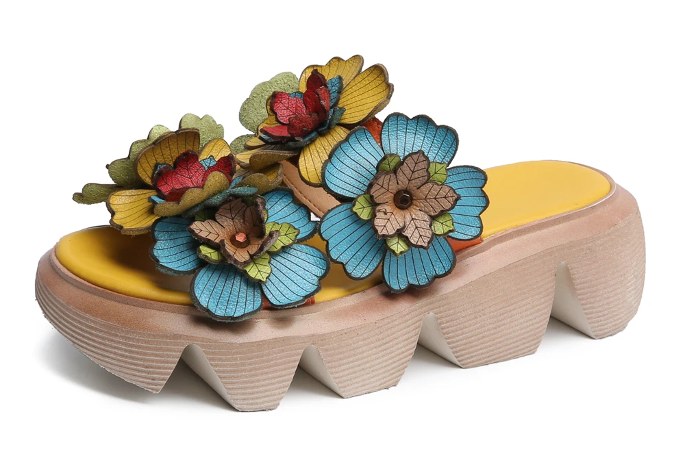 ▶Обувь изготовлена из натуральной коровьей кожи, цветы на ней красивые и изысканные.
