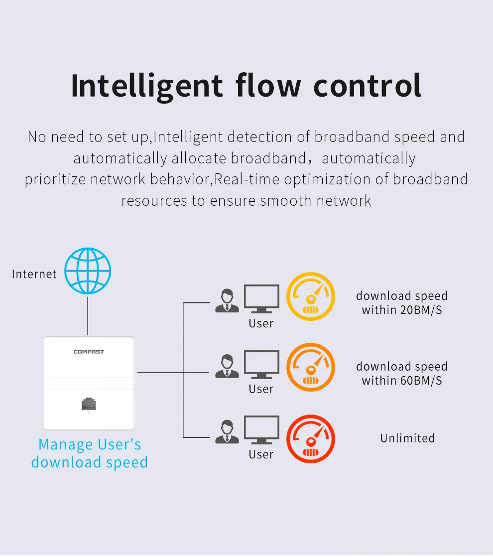 CF-E550AC-это гигабитная настенная точка доступа на 1200 Мбит/с, поддерживает защиту от помех на 2,4 и 5,8 ГГц, широкое покрытие зоны без мертвых кончиков и бесшовный роуминг, обеспечивая пользователей более плавным и быстрым Wi-Fi. Он подходит для различных крупных внутренних ситуаций, таких как дома, супермаркеты, гостиницы, корпоративные школы, конференции и выставки, KTV и другие сценария. 1. Гигабитная сетевая Высокоскоростная передача1200 Мбит/с Беспроводная передача, давайте вам наслаждаться быстрой сетью.2. Поддержка 802.11AC Wave2802.11AC Wave2 MU-MIMO (многопользовательская, многовходная, многовыходная) технология позволяет Wave2 AP общаться с несколькими клиентами одновременно, значительно увеличивая многопользовательскую пропускную способность и общий пользовательский опыт.3. Аппаратное ускорение RFНезависимое аппаратное ускорение 2,4G и 2,5G, что делает многофункциональную функцию более качественной.4. Аппаратное ускорение ЦПАппаратное ускорение применяется для QoS и управления клиентами.5.MU-MIMO оптимизацияОптимизируйте антенный массив, используя MU-MIMO технологию beamforming.6. ЛучаПрием и передача через антенну для улучшения пропускной способности и покрытия. Спецификация:1. Двухдиапазонный 11AC 1200 Мбит/с2. Набор микросхем: MT7628DA + MT7613B;