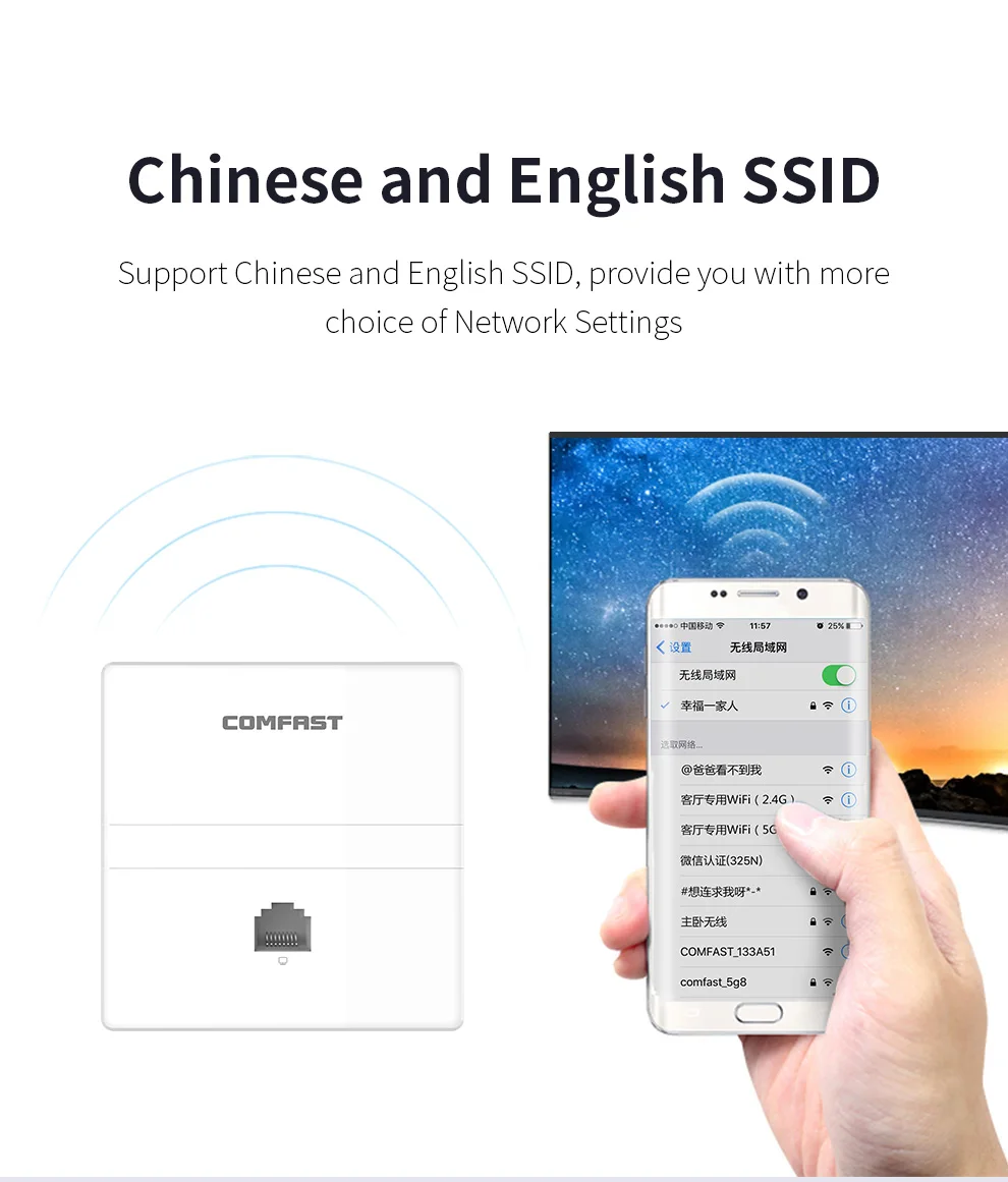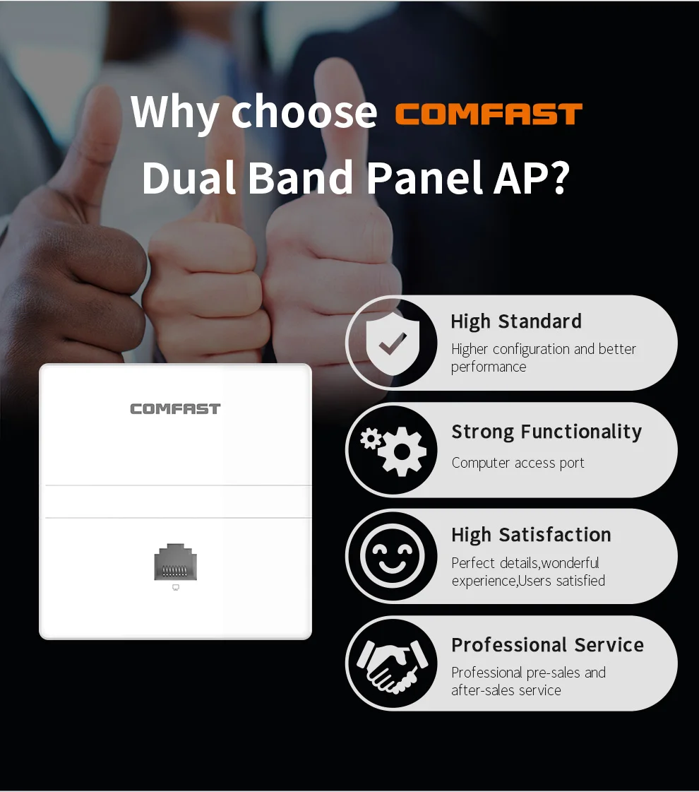 A: эта точка доступа поддерживает роуминг wifi, предлагаем выбрать маршрутизатор переменного тока, совместимый с ap вместе. Больше подходит установить тот же ssid, сделать управление, и проверить рабочее состояние точки доступа.