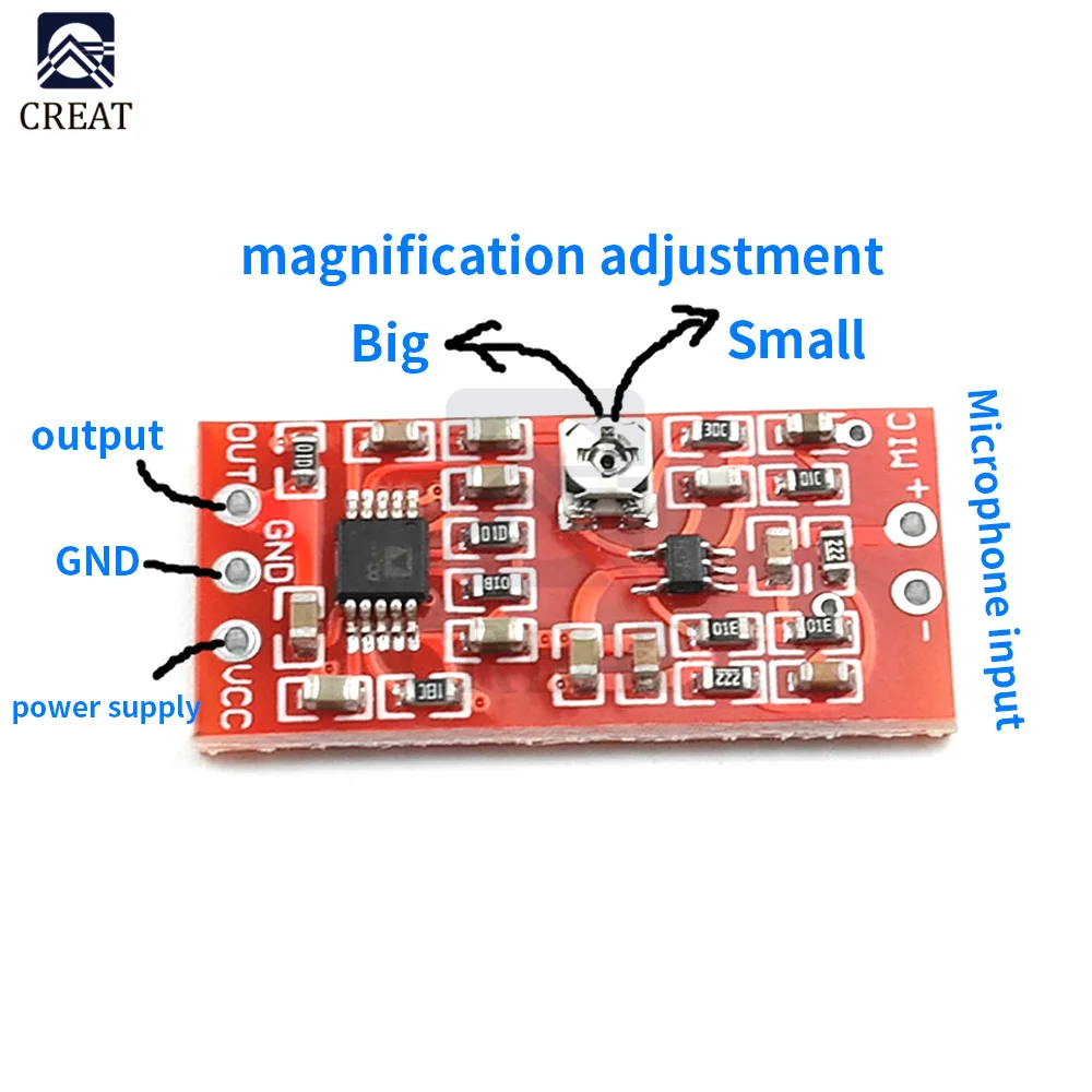 Примечание: Это только небольшое усиление сигнала, не может непосредственно управлять динамиком, вам нужно добавить усилитель мощности.