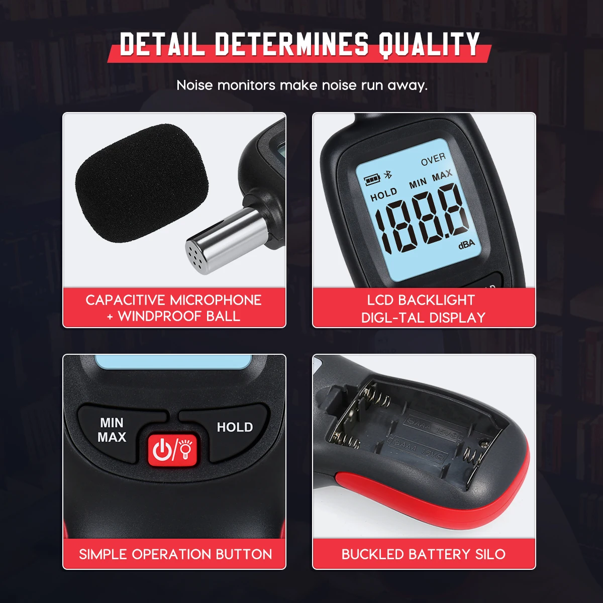 2.Wide measuring range: 30-130dBA, Fast Responding.Equipped with sponge ball.
