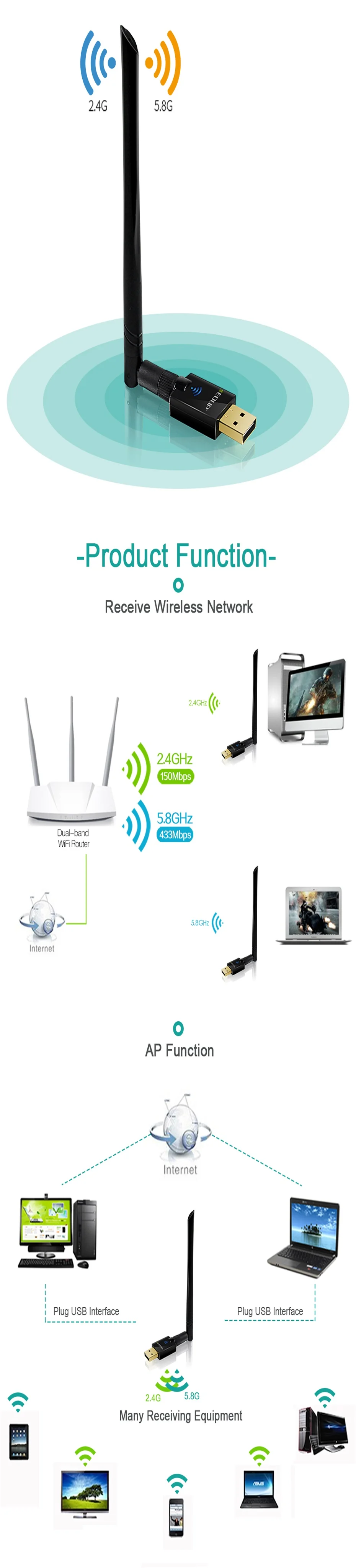 Скорость передачи данных до 2,4 ГГц до 150 Мбит/с и 5 ГГц до 433 Мбит/с
