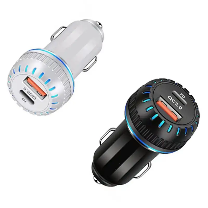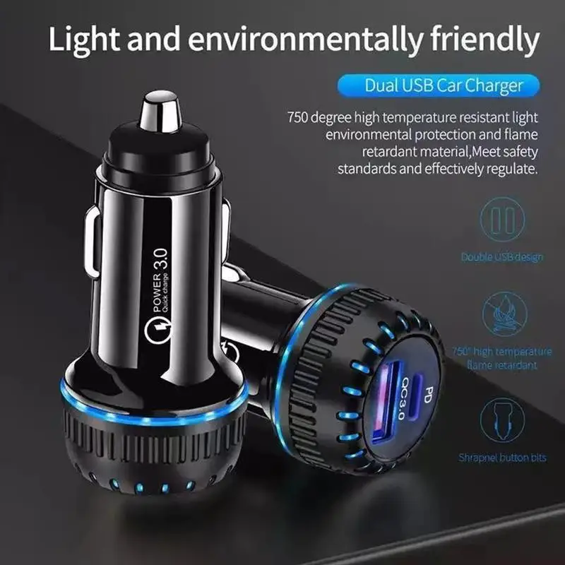 Быстрая зарядка с двумя портами: автомобильное зарядное устройство оснащено портом USB C (18 Вт PD3.0) и портом USB A (5 В/2,4 А), который может одновременно заряжать два устройства. Порт PD 3,0 может заряжать ваш iPhone 12 до 50% примерно за 30 минут, на 2,5x быстрее, чем стандартное зарядное устройство. Порт 5 В/2,4 А заряжает устройства гораздо быстрее, чем адаптер 5 В/1 А.