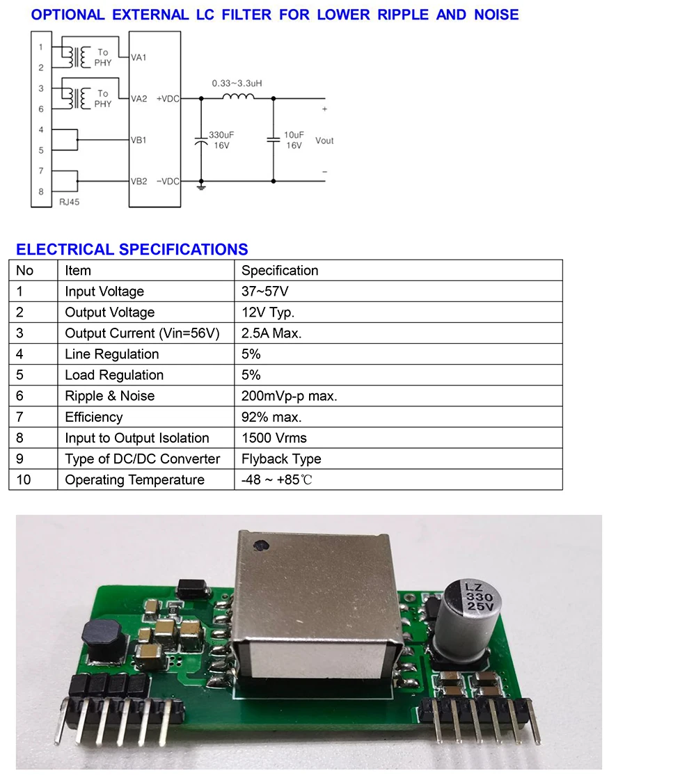26*62mm Over-temperature Protection Power over Ethernet 10M/100M/1000M IEEE802.3af Standard High-effect POE Module