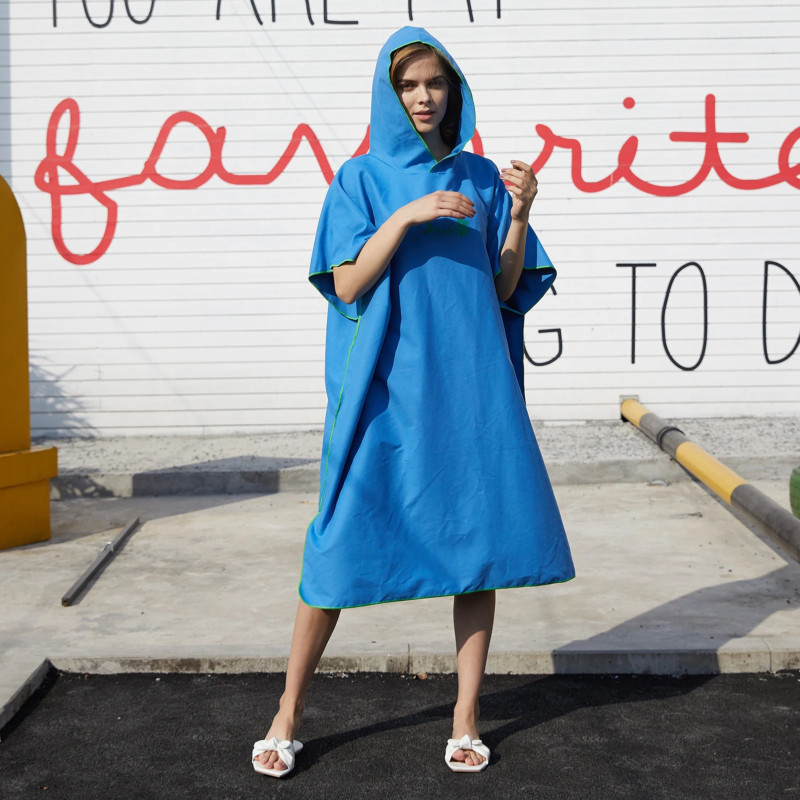 Пончо удваивается как полотенце, чтобы высушить себя после серфинга, никаких дополнительных полотенец не требуется.