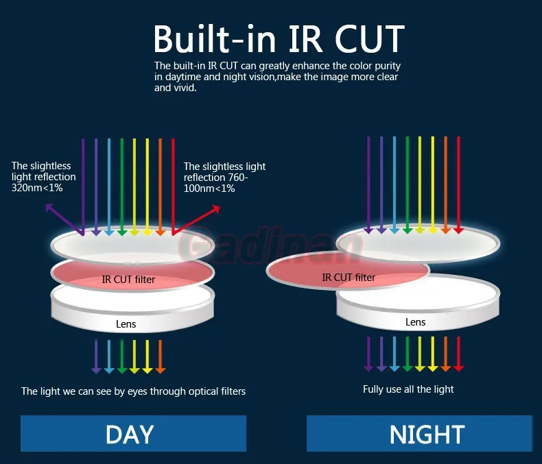 4. Встроенный IR-CUT фильтр, дневное и ночное видение