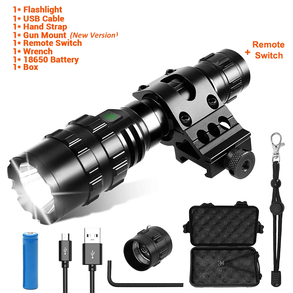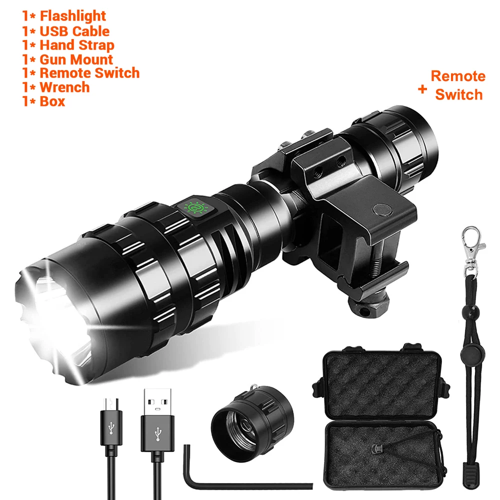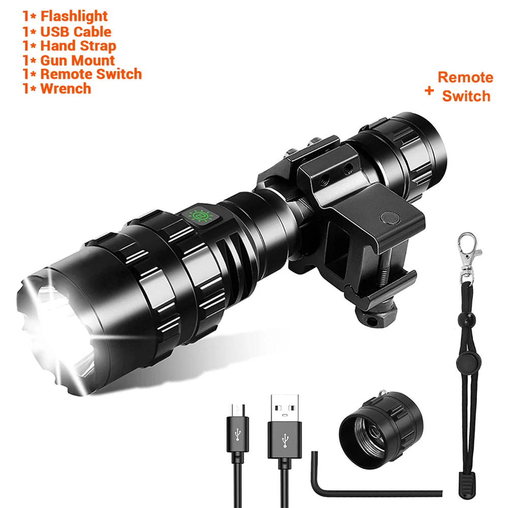 1600 люмен тактический фонарь 5 режимов освещения охотничий фонарик USB зарядный фонарь военный поисковый фонарик стрельбы оружейные аксессуары с зажимом