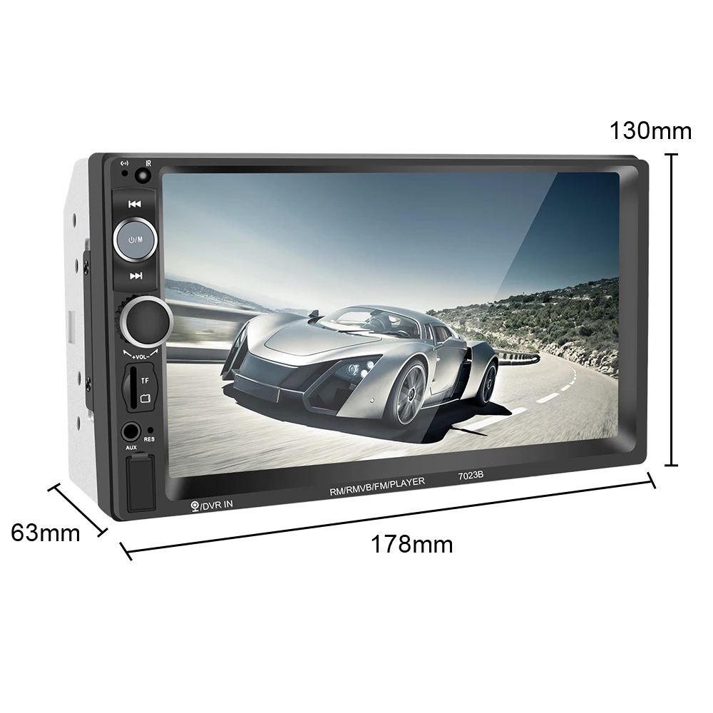 Особенности: 7 дюймов HD Автомобильный Радио MP5 плеер с цифровой сенсорный экран. Поддержка Bluetooth громкой связи, bluetooth музыкальный плеер. Поддержка аудиоформата: DIS/MP3/MA/ACC/OGG/PEWAV/RA/AC3/MP2/AMR/FLAC. Поддержка видео формата: AVI/MP4/FLV/PMP/RM/RMVB/MPG. Новый режим дистанционного управления, поддержка рулевого колеса автомобиля дистанционного управления, это более удобно. 1080P Full HD 7 "дюймовый сенсорный ЖК-экран дает вам фантастический опыт просмотра HD видео. Полнофункциональный пульт дистанционного управления. Модный дизайн, регулировка громкости ручки. Функция воспроизведения памяти песни. Выбор различных эквалайзеров: Джаз, Рок, Поп, Классика и т. Д. Аппаратная Электронная обработка звука (эквалайзера), различные режимы звука, высокий и низкий тон можно регулировать. Отключение питания с функцией автоматического хранения памяти в режиме радио или TF/USB. Подключите телефон к функции bluetooth, поднимите звуки вашего GPS и ваших любимых песен в автомобильном динамике. Играйте в роли MP3, MP5 плеера, радио, датчика парковки и т. д. Это ваш лучший выбор для вашего автомобиля. Спецификация: Размер сенсорного экрана: 7 дюймов Модель: 7023B Напряжение: 12 В постоянного тока Частотный диапазон: 87,5-108 МГц Память отключения питания: Поддержка Разрешение экрана: 1024*600 Радиосвязь: FM1/FM2/FM3 Ссылка на телефон: Поддержка Android Зарядка телефона: Suppprt Слот для карты: мини-карта Язык OSD: английский, китайский, французский, шведский, арабский, тайский, Польша, Турция, Германия, Россия, Испания, Турция, Италия, Португалия. Посылка включает в себя: 1 х Автомобильный сенсорный экран MP5 плеер 1 пульт дистанционного управления 1 х пульт дистанционного управления для руля 1 х руководство на английском языке