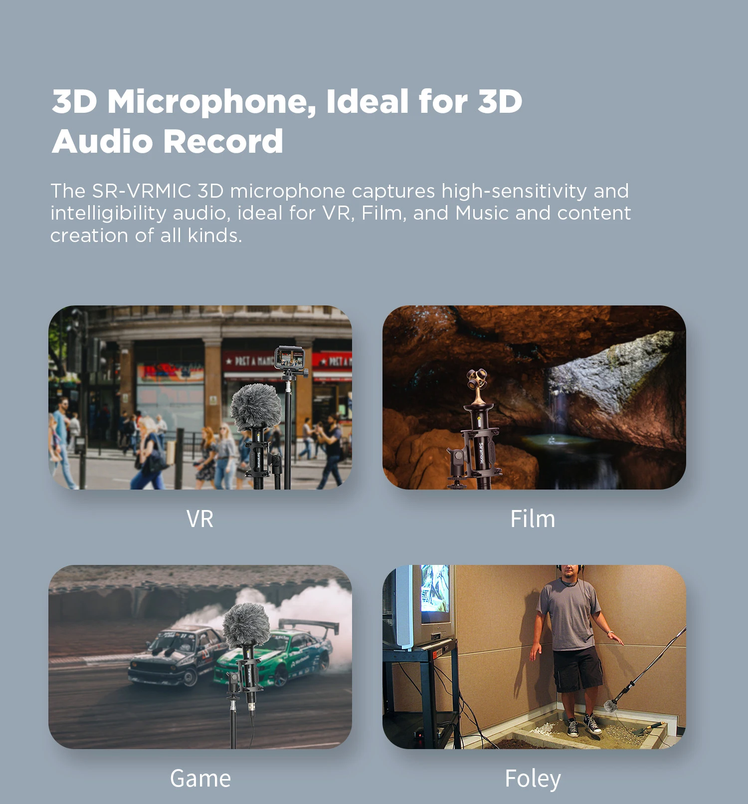 Одного SR-VRMIC микрофона достаточно для записи 3D звука, что значительно экономит ваше время, деньги и рабочую силу. Получите один SR-VRMIC 3d-микрофона для улучшения креативности и производительности.