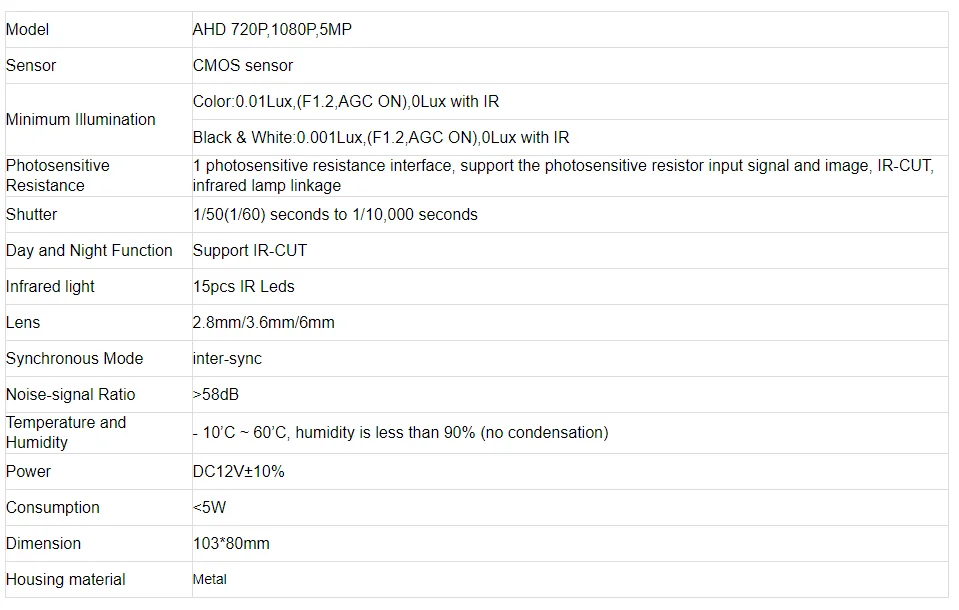 1. AHD 720P,1080P,5MP