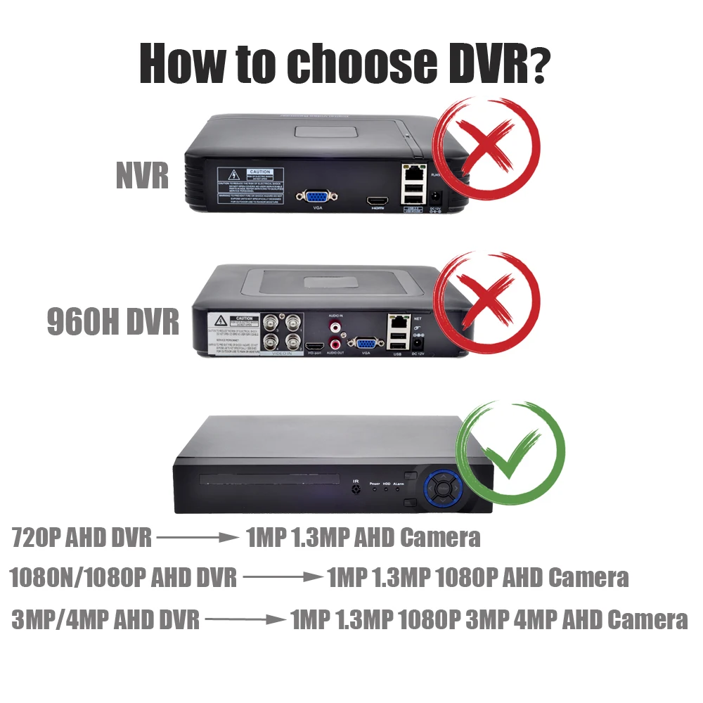 2. Убедитесь, что у вас есть AHD DVR для AHD камер. Или вы не сможете просматривать или записывать видео.